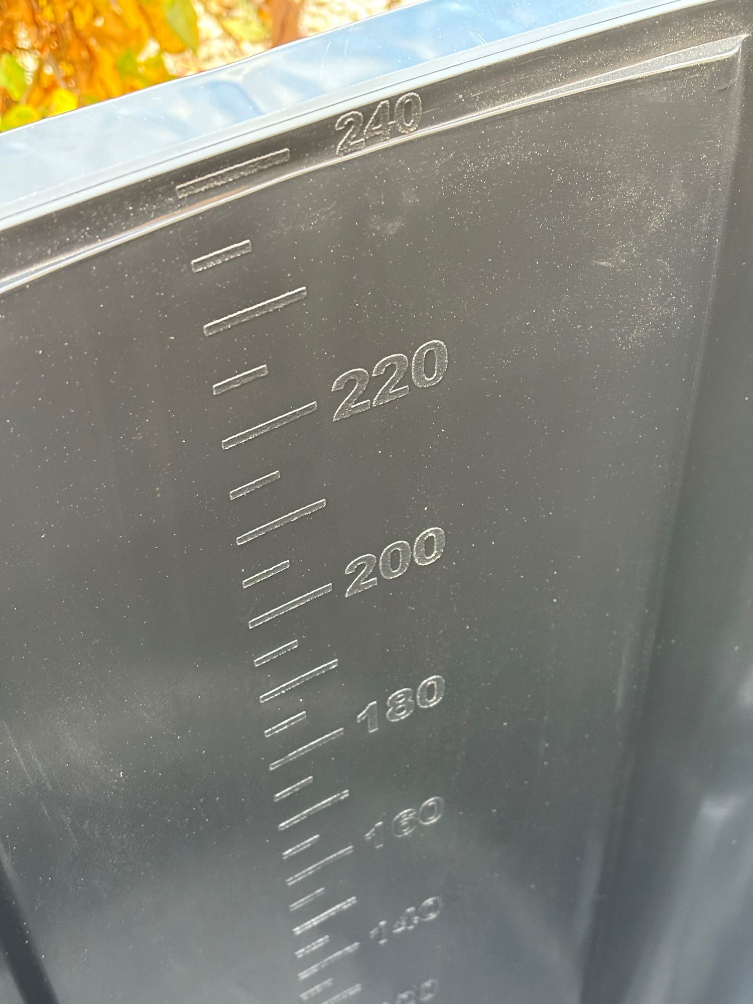 This 240-liter container is easy to handle and tilts easily.   for easy cleaning and draining of liquids.