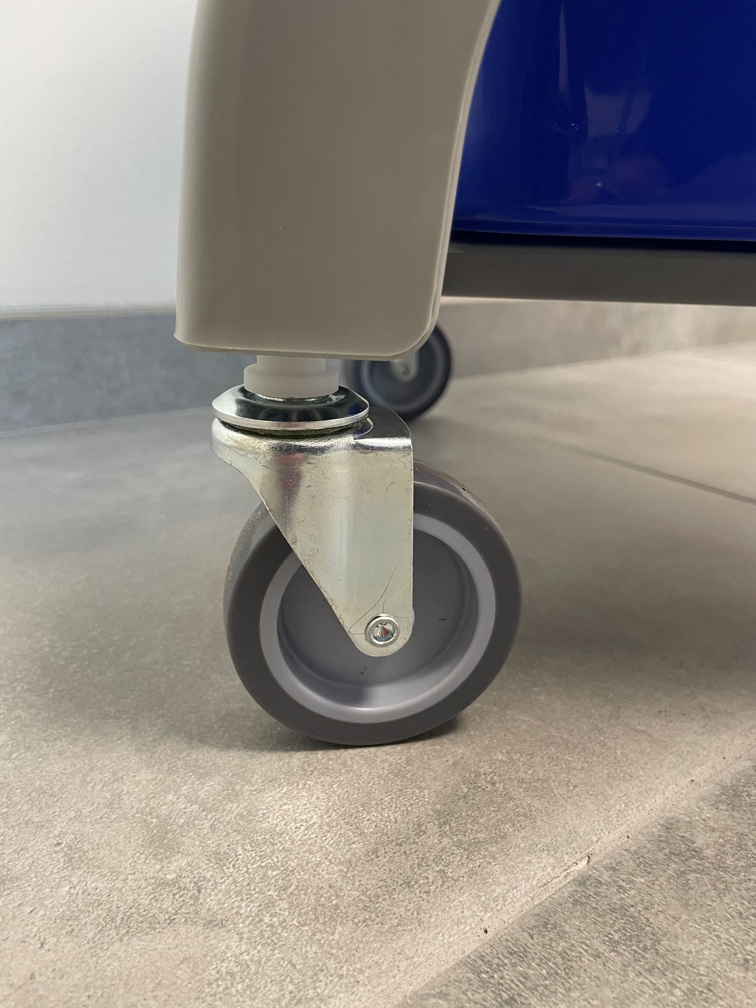 It moves very easily thanks to its 4 steering wheels even with its buckets filled with rinsing water and solution. Its reduced width of 43 cm allows it to pass everywhere without hindrance and to move in elevators, corridors, confined areas...