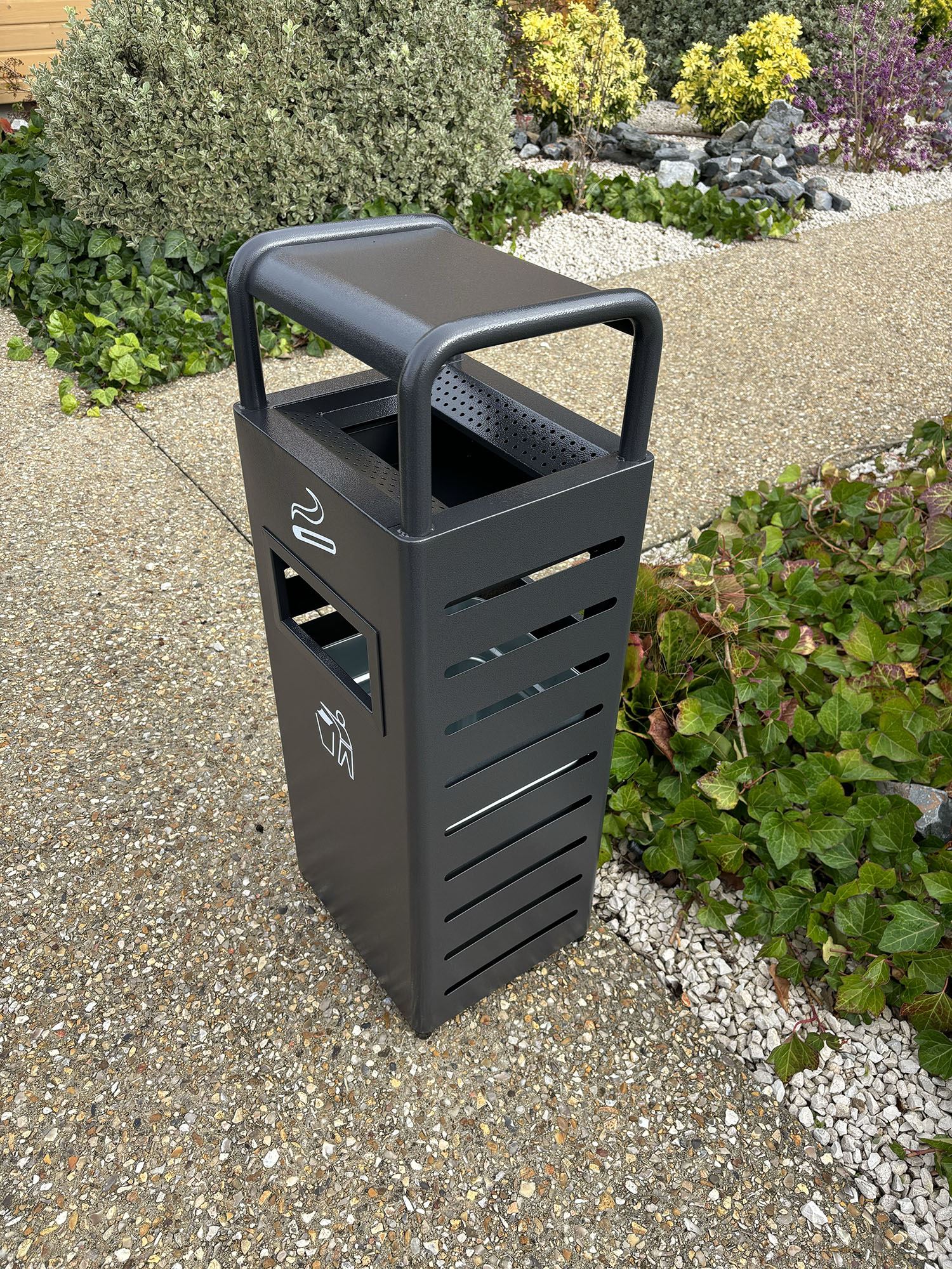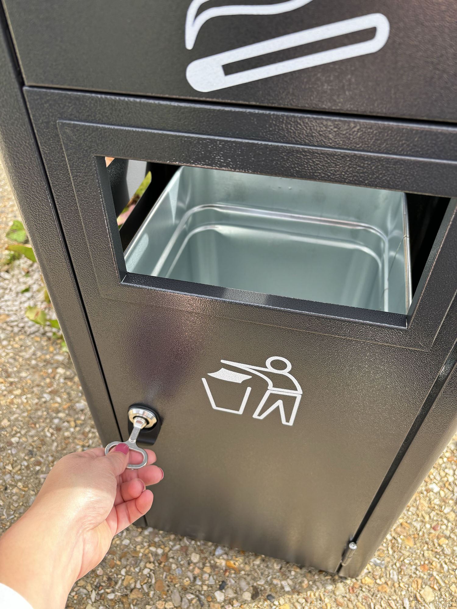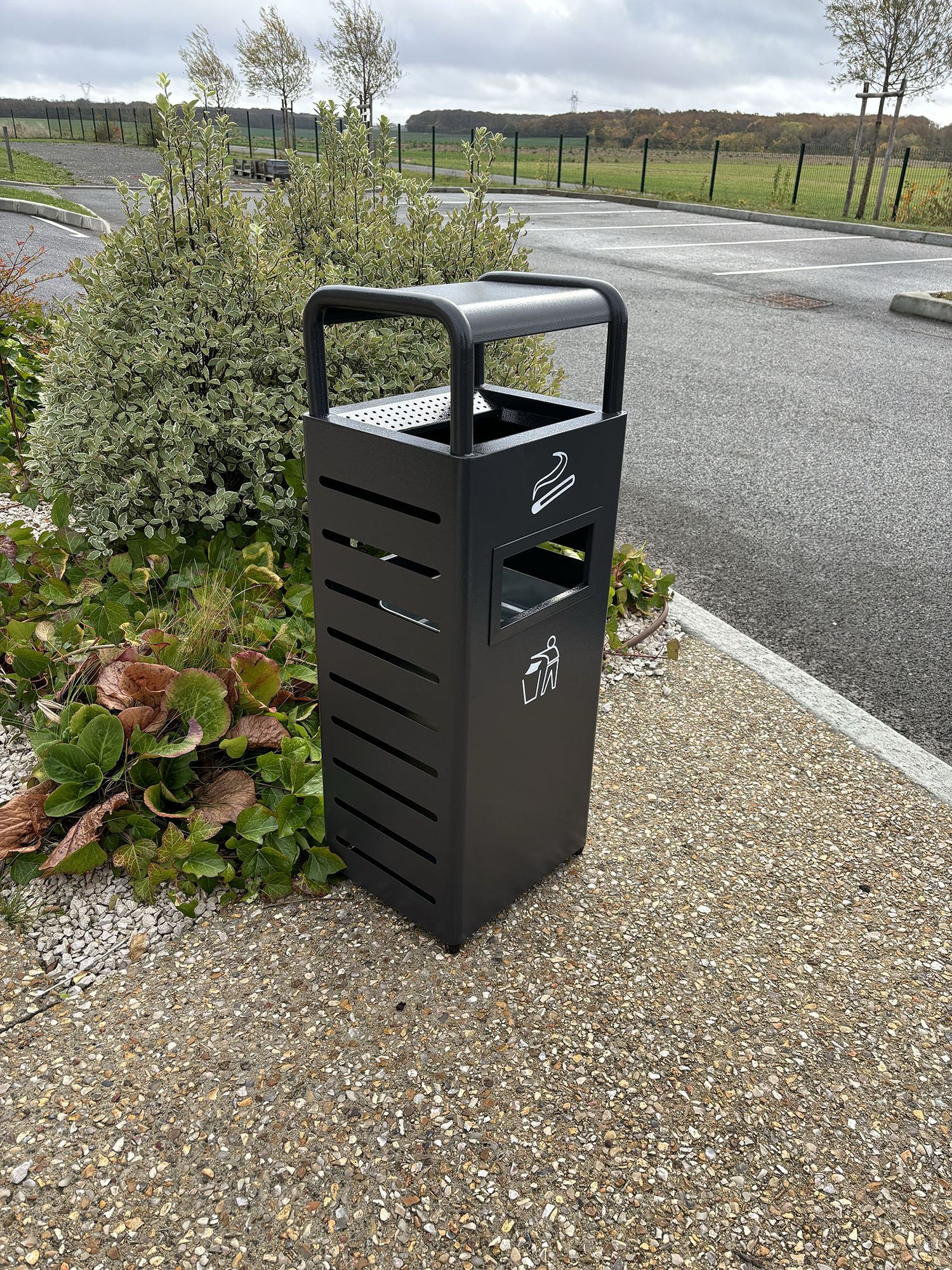 Do you have large spaces and high traffic areas? This large-capacity litter bin with an integrated ashtray is a solution for park entrances, shopping areas, train station entrances, airport entrances, commercial parking lots, public spaces, beach areas, amusement parks, etc.