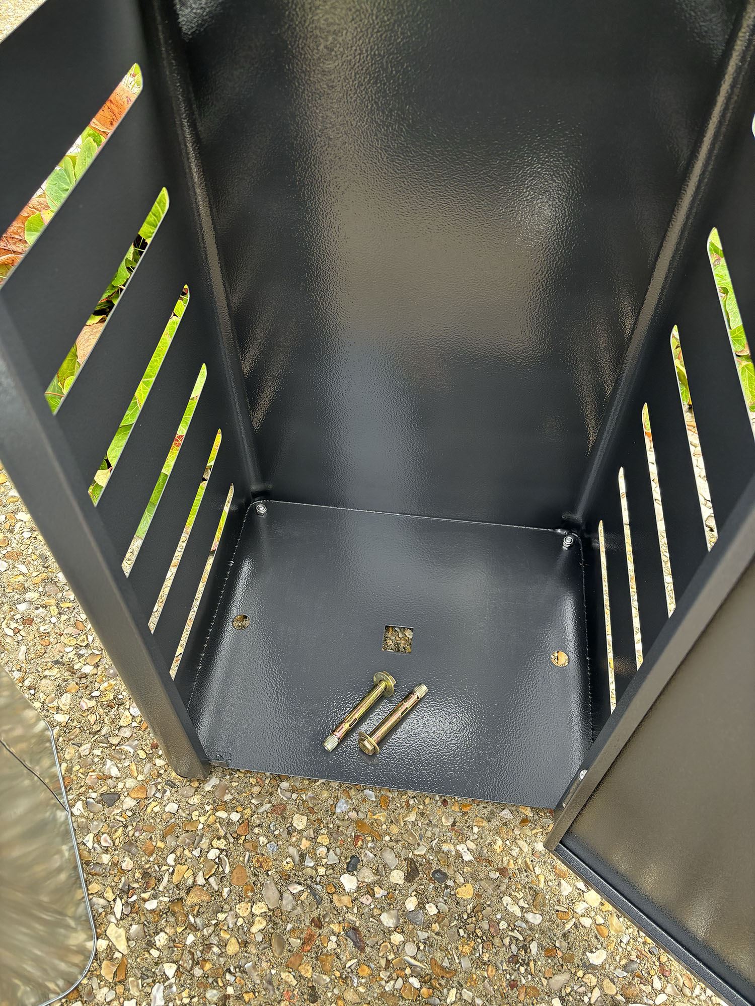 This 26-liter outdoor ashtray/bin offers a dual function as both a bin and an ashtray. It is made of galvanized steel for outdoor use.