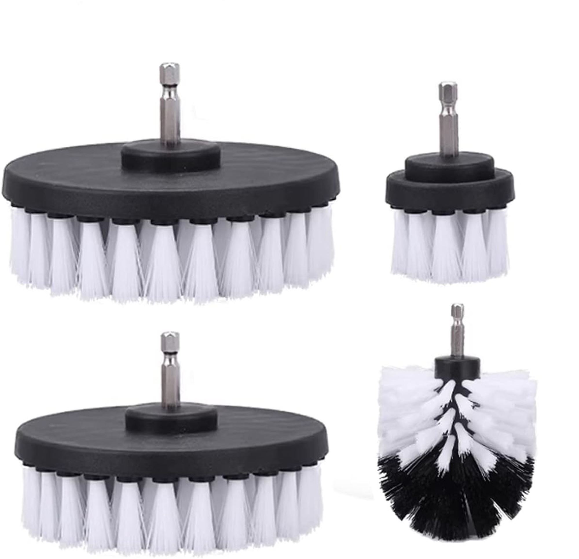 Make cleaning delicate surfaces easier with this set of 4 soft drill brushes. The soft nylon bristles effectively remove dirt and stains while protecting materials. The different sizes allow you to easily reach hard-to-access areas on carpets, rugs, or textiles.
