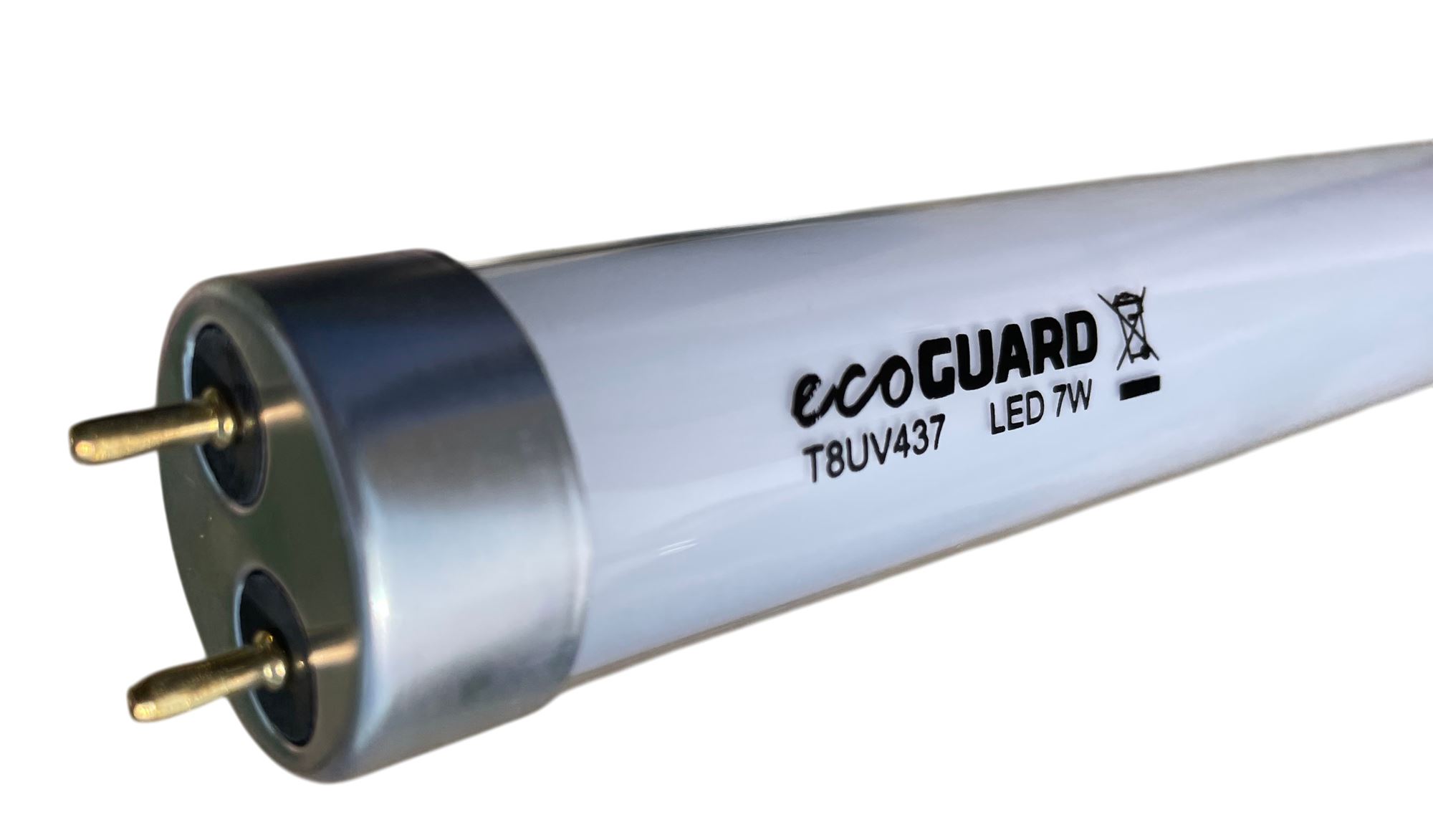 7-watt LED tube, 45 cm long. 7-watt LED tubes emit very high UV radiation with a peak at 365nm. The eyes of flying insects are generally sensitive to this wavelength. Sold individually.
