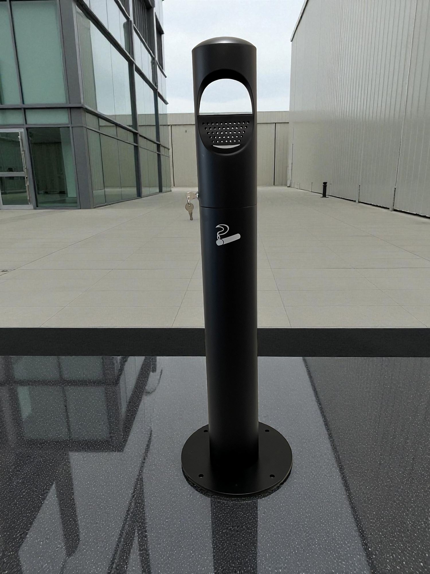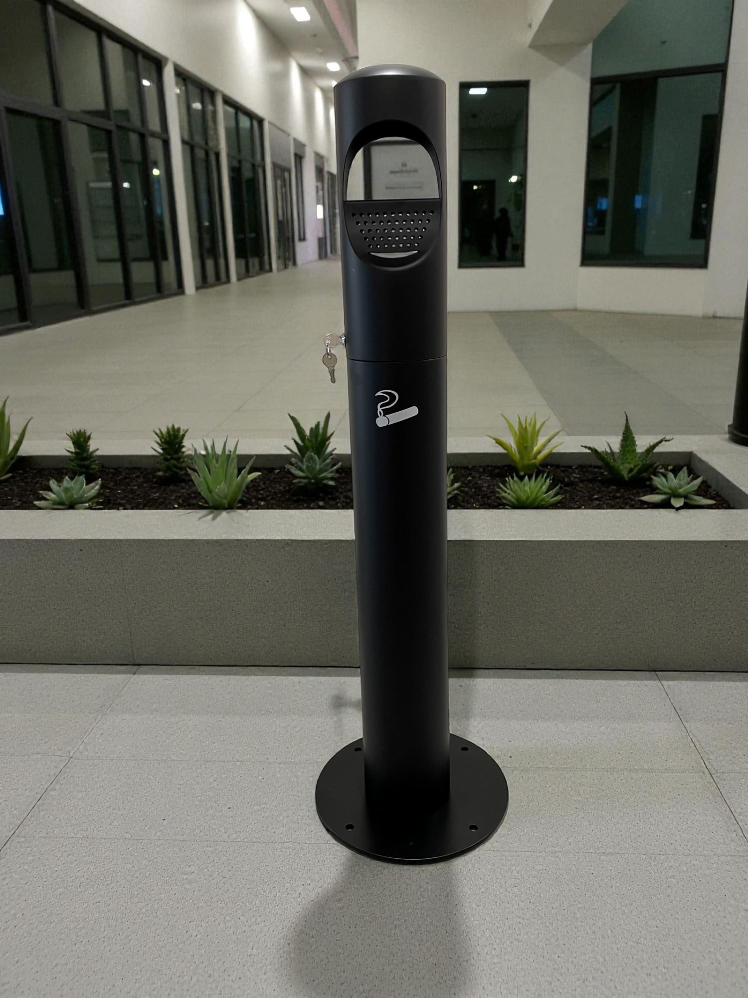 The 8-litre tubular totem-shaped outdoor ashtray is suitable for use indoors and in protected outdoor locations.