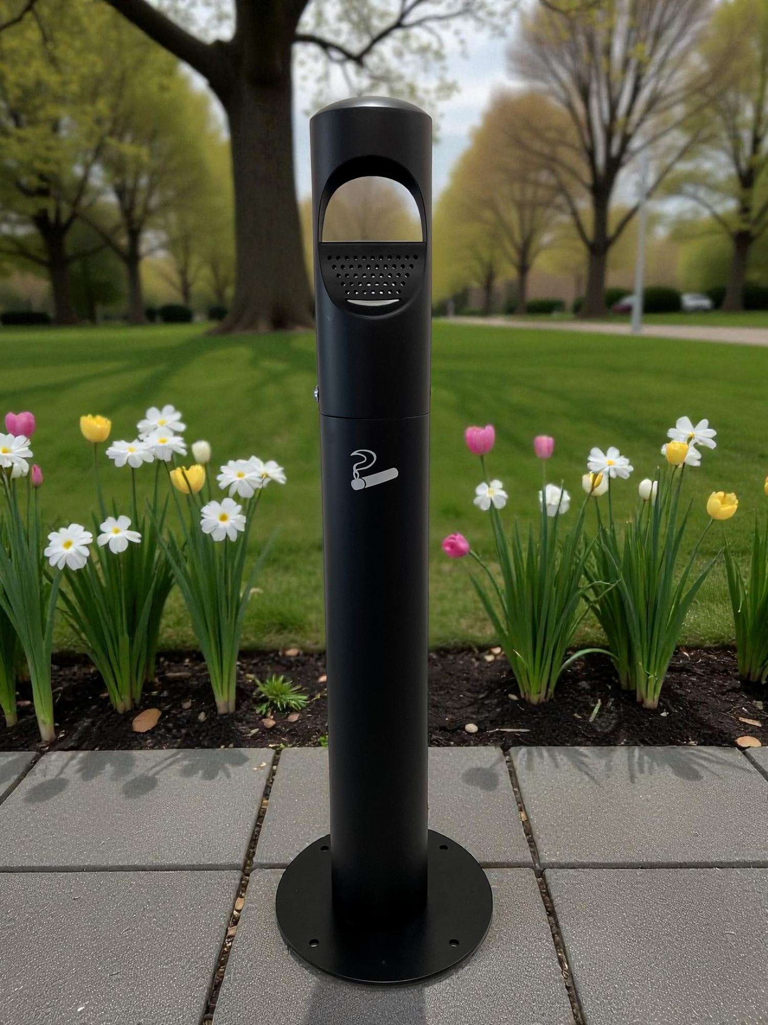 Simple and suitable for indoor or outdoor use, this tubular totem-style version is ideal for smokers who prefer to stand. With its round base, it can be placed on a surface or fixed to the ground at four points.