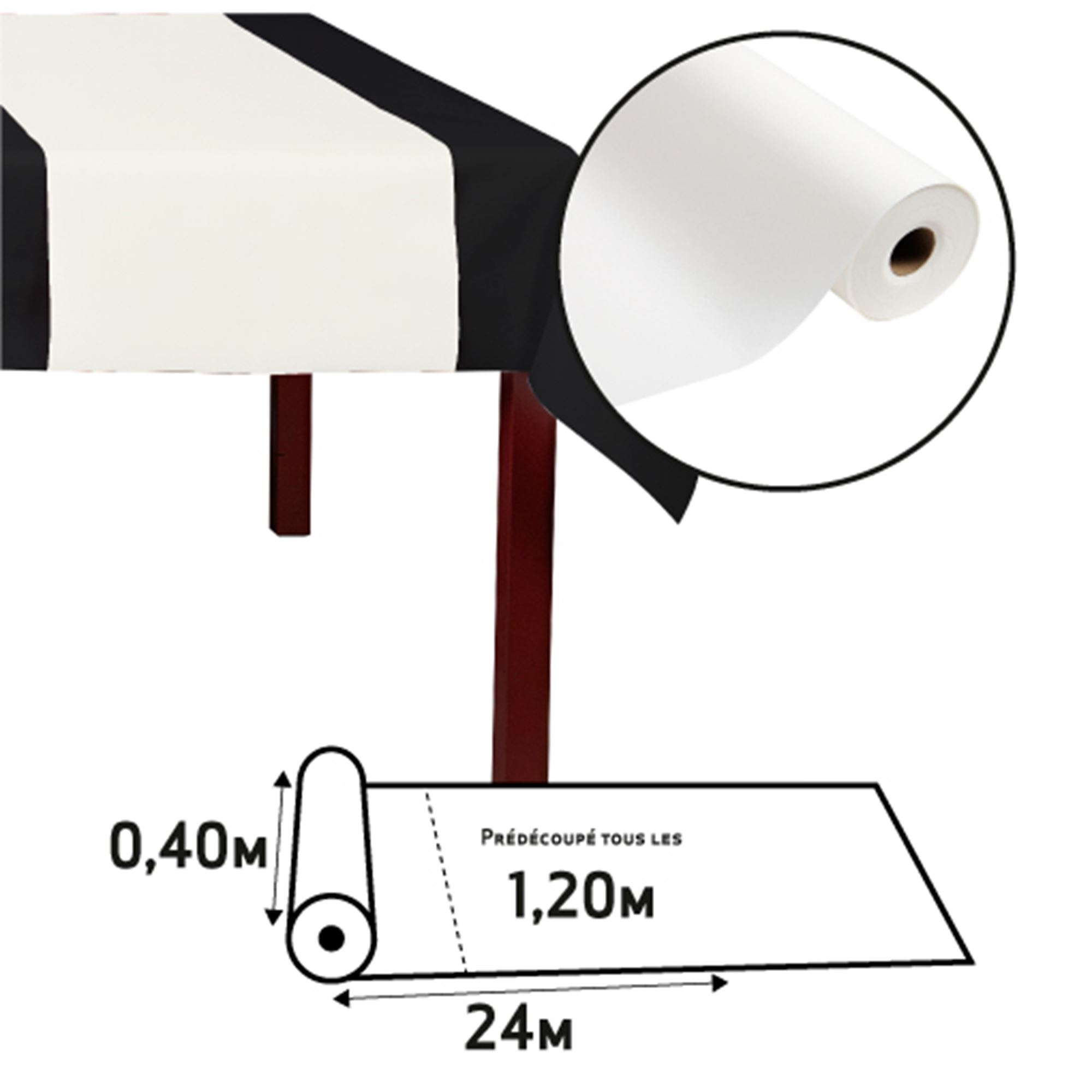 Made from Airlaid material, it offers a fabric-like feel: supple, soft to the touch, durable, and absorbent, perfectly suited for intensive professional use. The roll is pre-cut every 1.20 m , allowing for quick, clean, and time-saving installation.