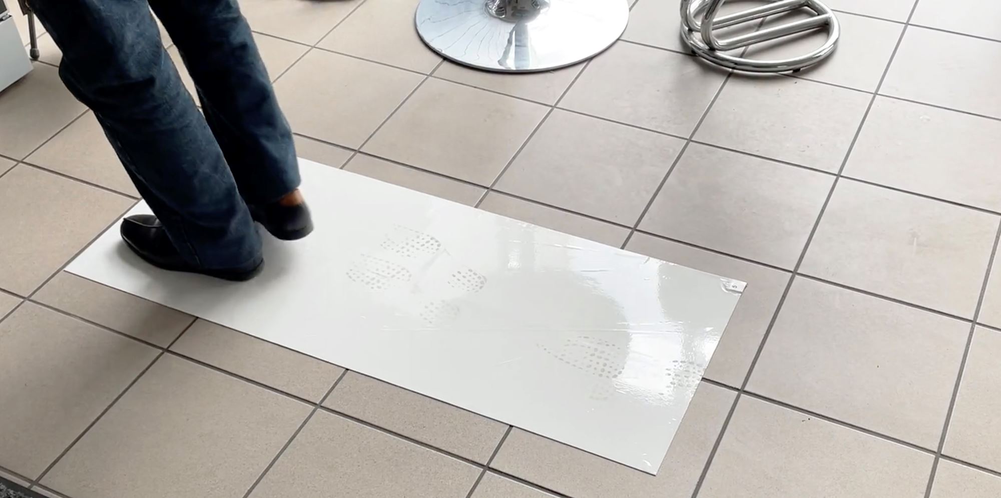 600x900 mm anti-contamination mat with self-adhesive surface to capture the underside of the soles.