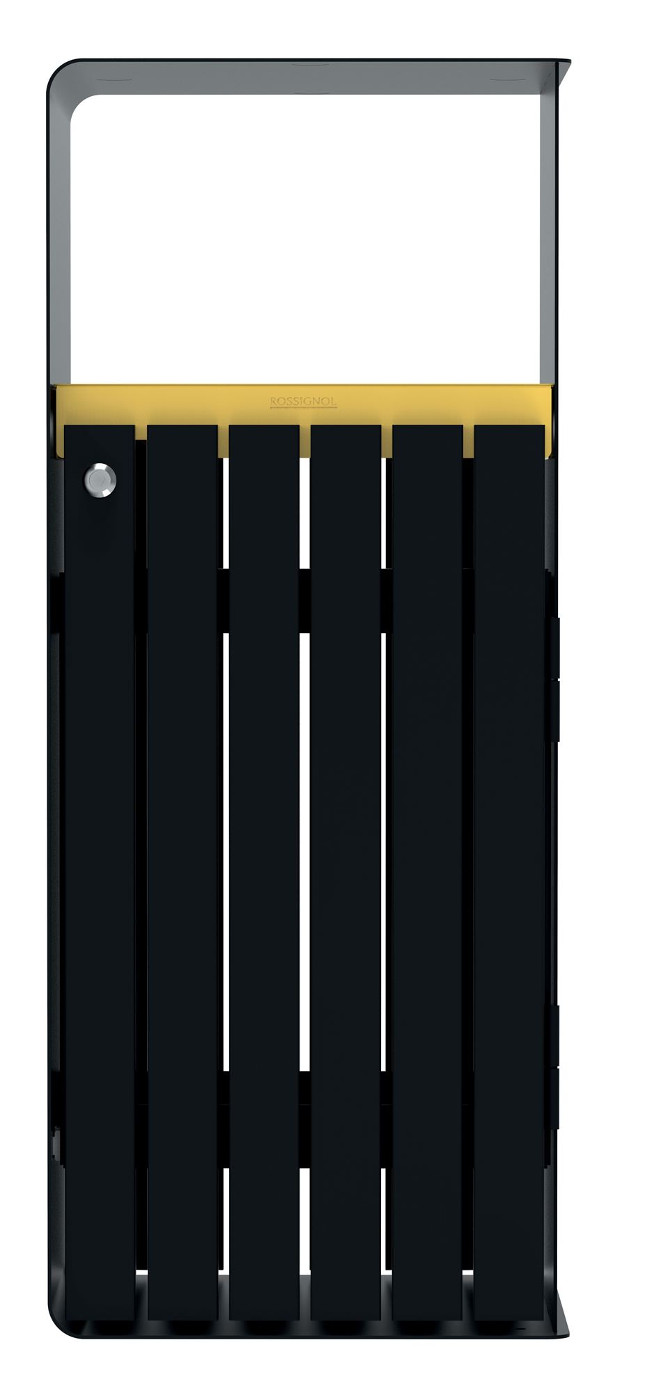 In environments where aesthetics are key, this bin ensures efficient sorting while maximizing space. Its calibrated opening naturally guides users. The powder-coated aluminum slats provide a modern finish, while the treated steel frame guarantees durability. It can be combined with other bins to create a coordinated and functional recycling area.