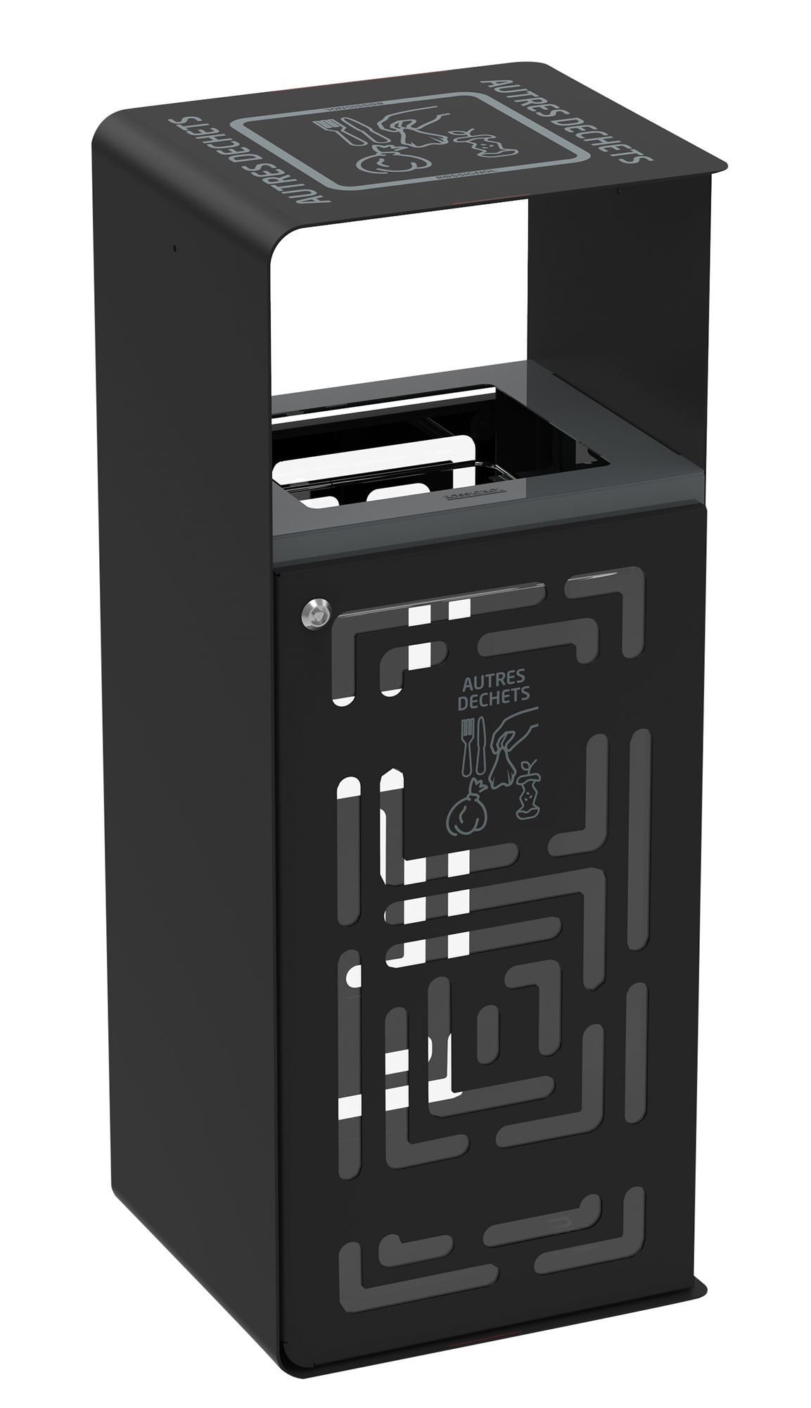 In outdoor spaces, waste management requires simple and effective solutions. This 110L bin features a calibrated opening that facilitates use while limiting inappropriate waste disposal. It can be combined with other models to create a structured and coherent recycling area. It also includes a pest-proof base plate that restricts access to waste and helps prevent rodent infestations.