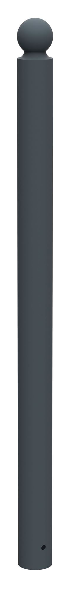 The Rossignol ball bollard has a round head with a diameter of 76 mm. The total height is 1200 mm, including 200 mm for burying. It can be embedded directly in the ground. Made in France. Matt anthracite RAL 7016.
