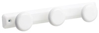 Patere 3 round white head. Powder coated steel. Dimension: 300x55x50. Available in chrome.