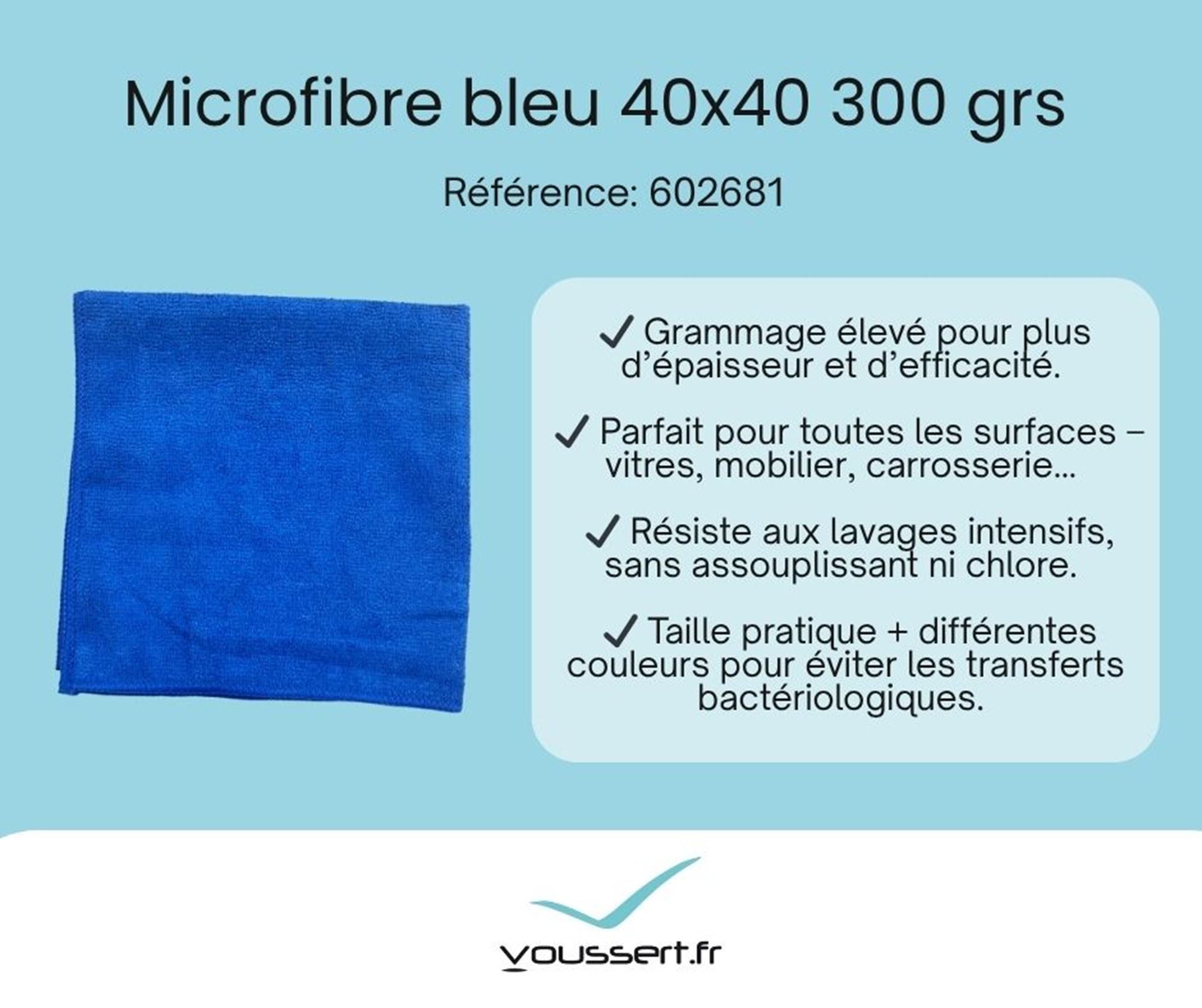 Looking for a thick, heavy-duty microfiber cloth? The 300gsm microfiber cloth, measuring 40x40cm when unfolded, will be the answer for more comfort and efficiency in your cleaning operations! Ideal for glass and furniture surfaces.