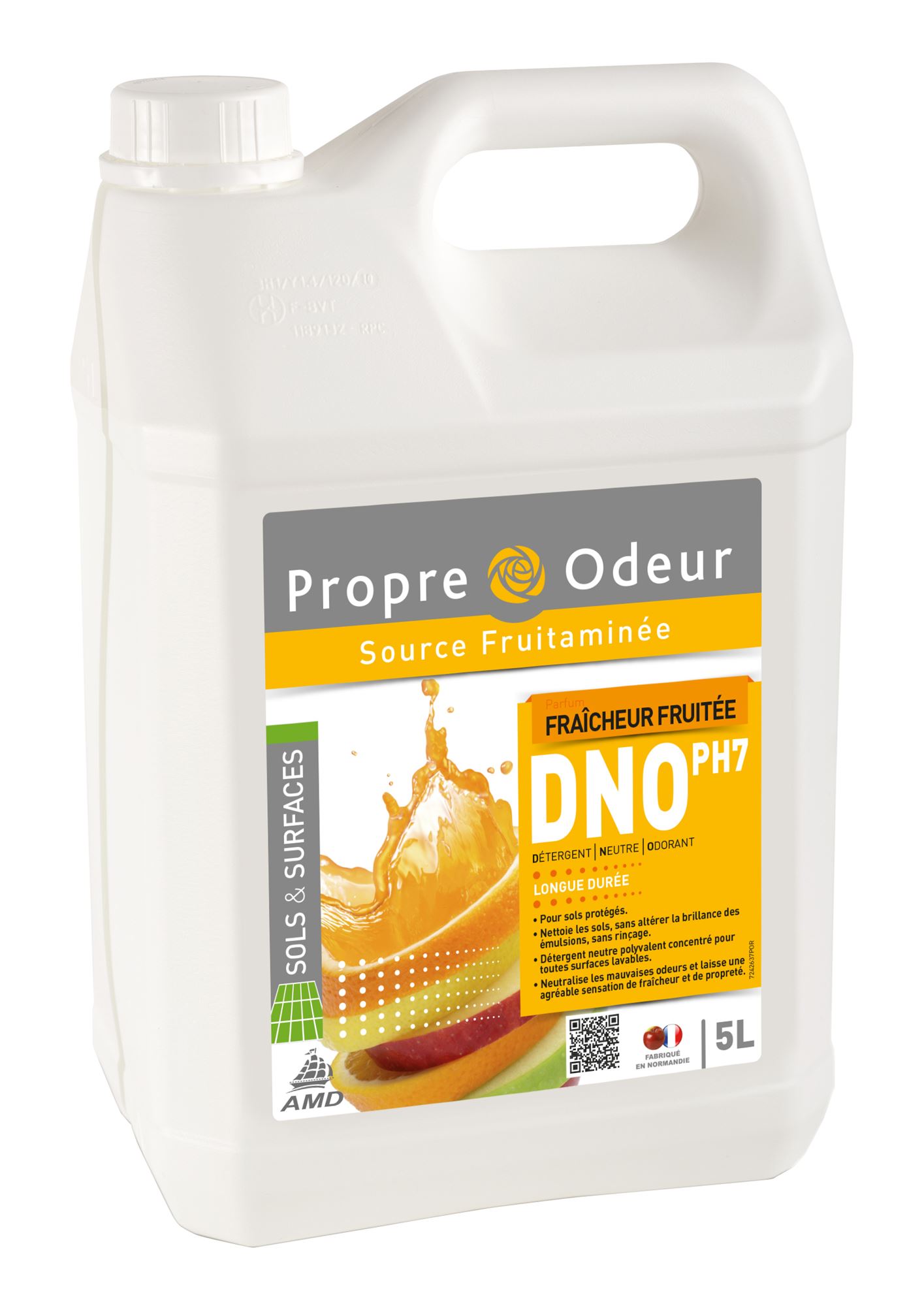 Clean smell DNO fruity scent is an odorous neutral cleaning detergent that can be used on floors and surfaces even protected by an emulsion or wax. Cleans floors, without altering the shine of emulsions, without rinsing.