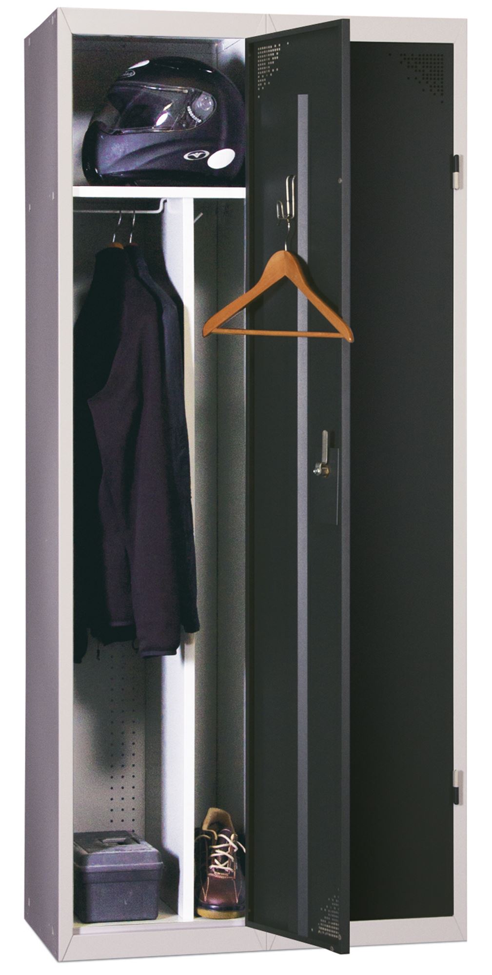 - Improved ventilation by perforation over the entire height of the back of the locker.