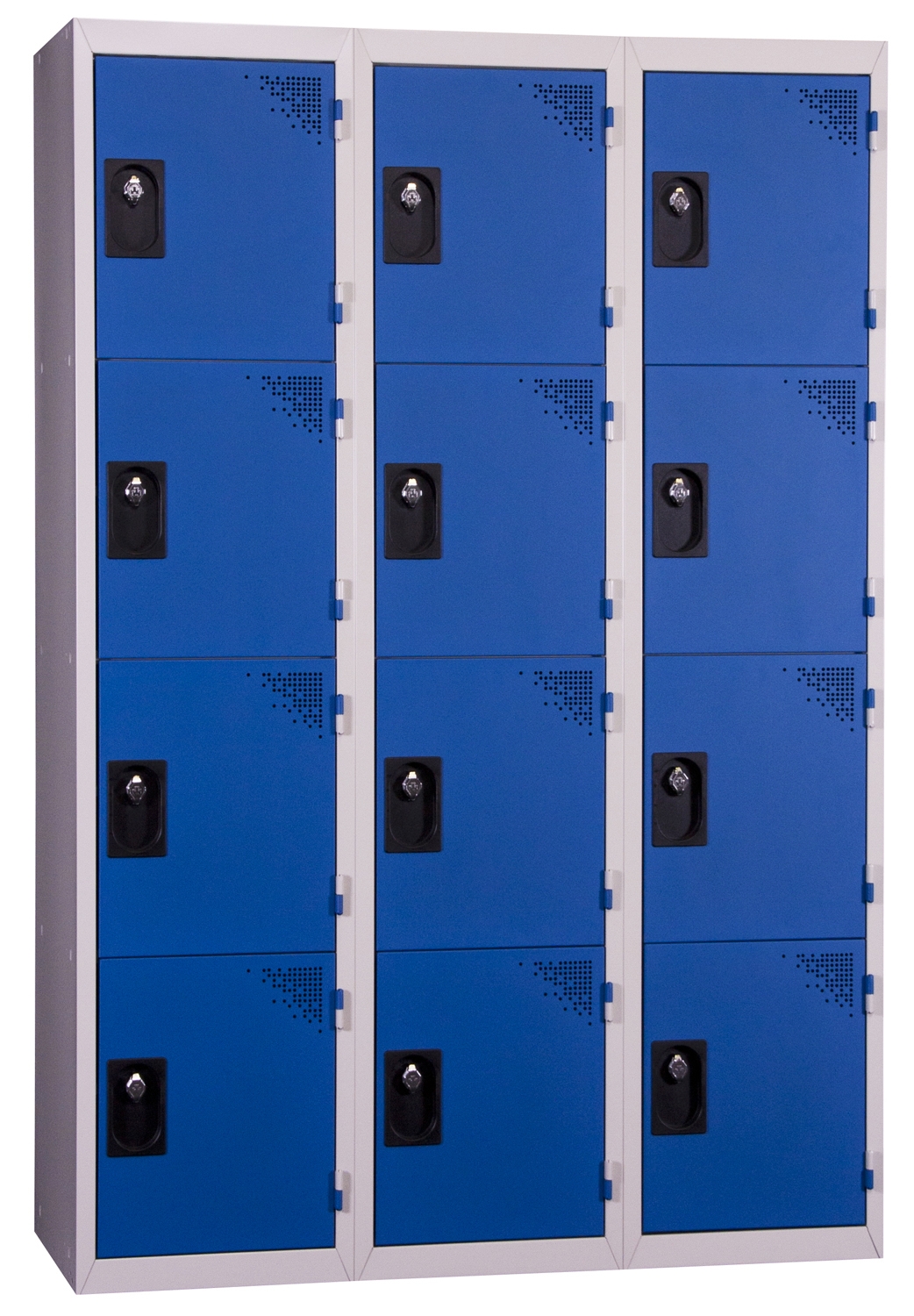 Multicase piece cloakroom, 4 boxes stacked, 3 columns. Plastic adhesive label holder. Metal body with structural reinforcement. Door with assoudisseurs optimized for your back full height confort.Ventilation. Door with omega vertical reinforcement. Closure system lock (padlock hasp or other request please contact us). Antidégondable exclusive and patented EVP, door to travel 180 °. 7/10ths thickness as standard. Colors on stock: Grey Body Ral 7035, Ral 7035 Grey Door, Blue Ral 5005, Ral 3003 Red, Anthracite RAL 7016 (other colors are subject to a surcharge and a longer time, please contact us). Dimensions: 1800mm x 1200mm x 500mm (H x W x D Top). Cloakroom ready after unpacking.