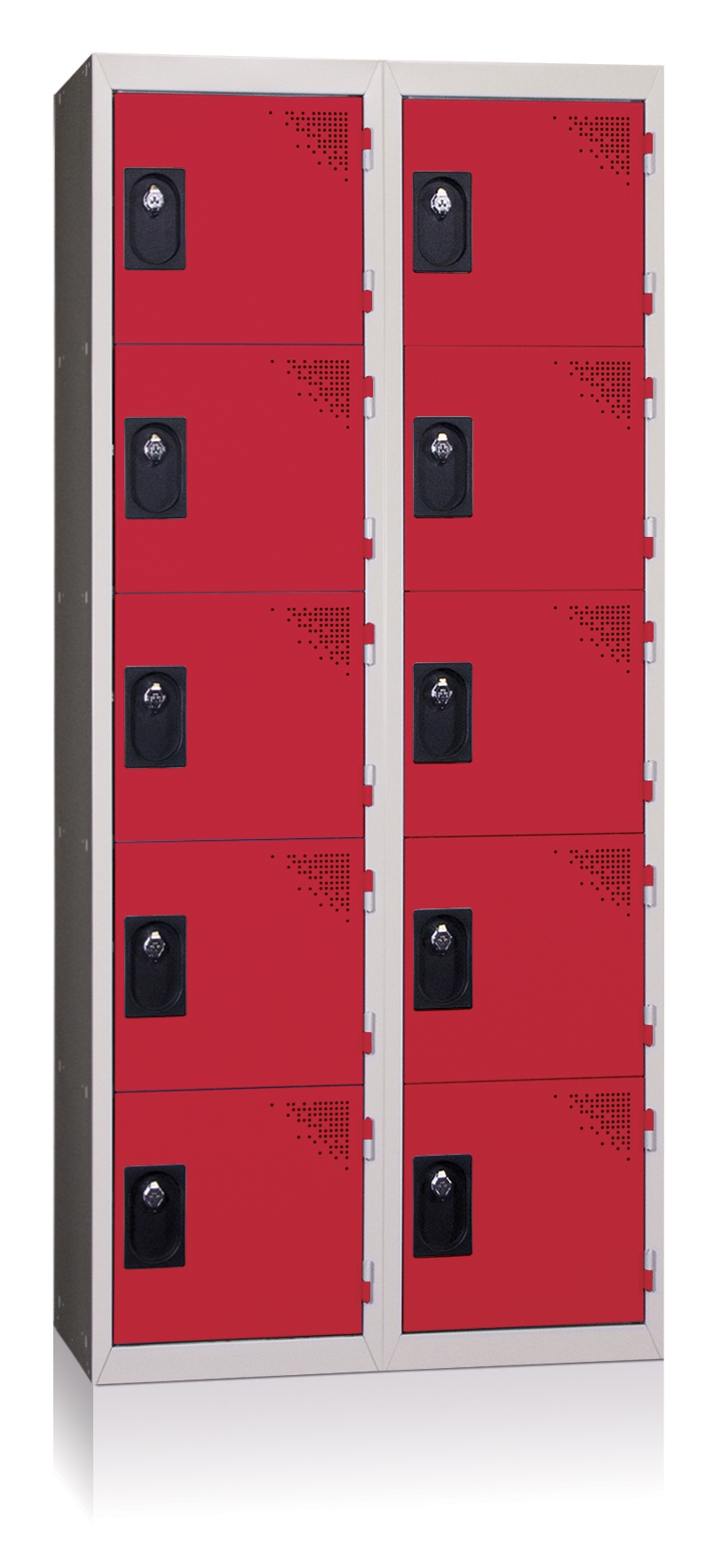 Multicase piece cloakroom, 5 boxes stacked, 2 columns. Plastic adhesive label holder. Metal body with structural reinforcement. Door with assoudisseurs optimized for your back full height confort.Ventilation. Door with omega vertical reinforcement. Closure system lock (padlock hasp or other request please contact us). Antidégondable exclusive and patented EVP, door to travel 180 °. 7/10ths thickness as standard. Colors on stock: Grey Body Ral 7035, Ral 7035 Grey Door, Blue Ral 5005, Ral 3003 Red, Anthracite RAL 7016 (other colors are subject to a surcharge and a longer time, please contact us). Dimensions: 1800mm x 600mm x 500mm (H x W x D Top). Cloakroom ready after unpacking.