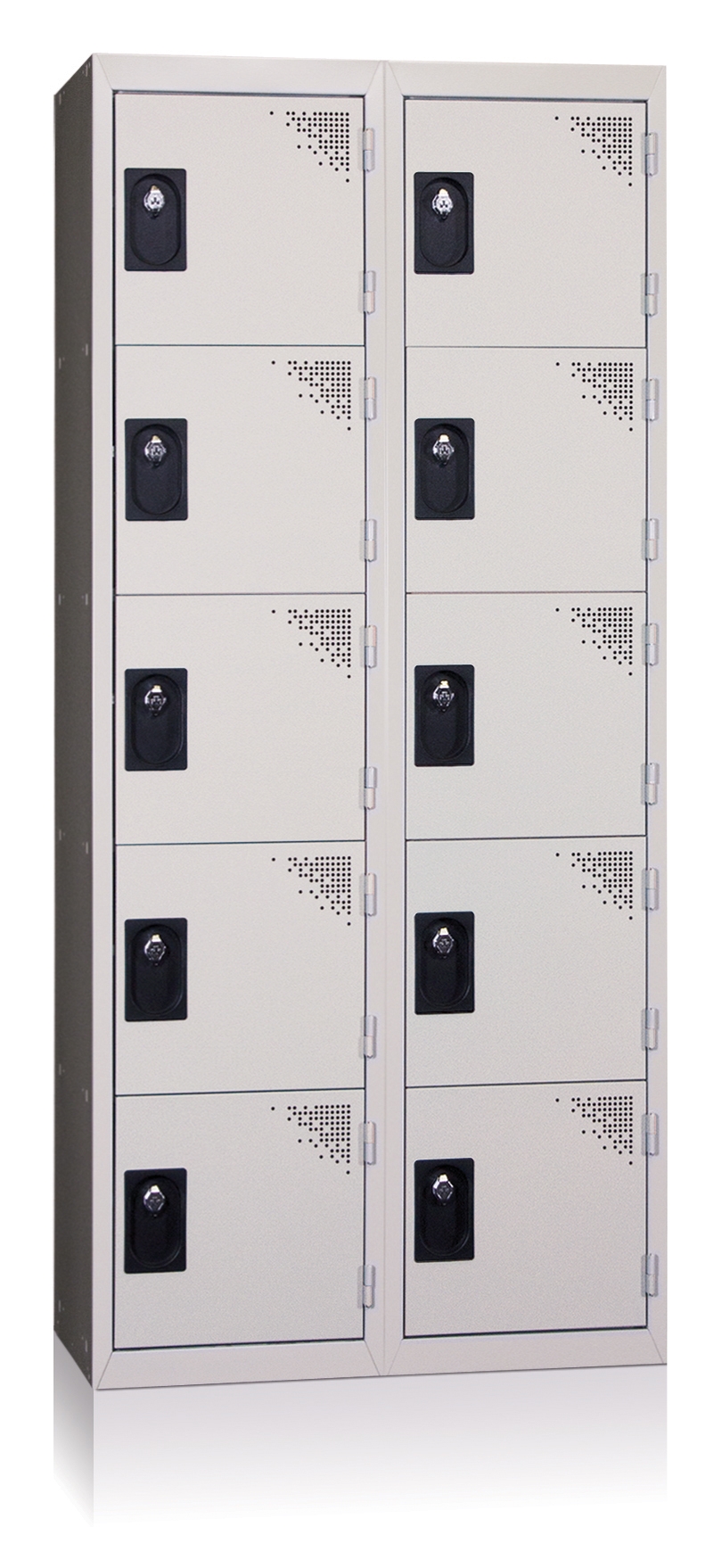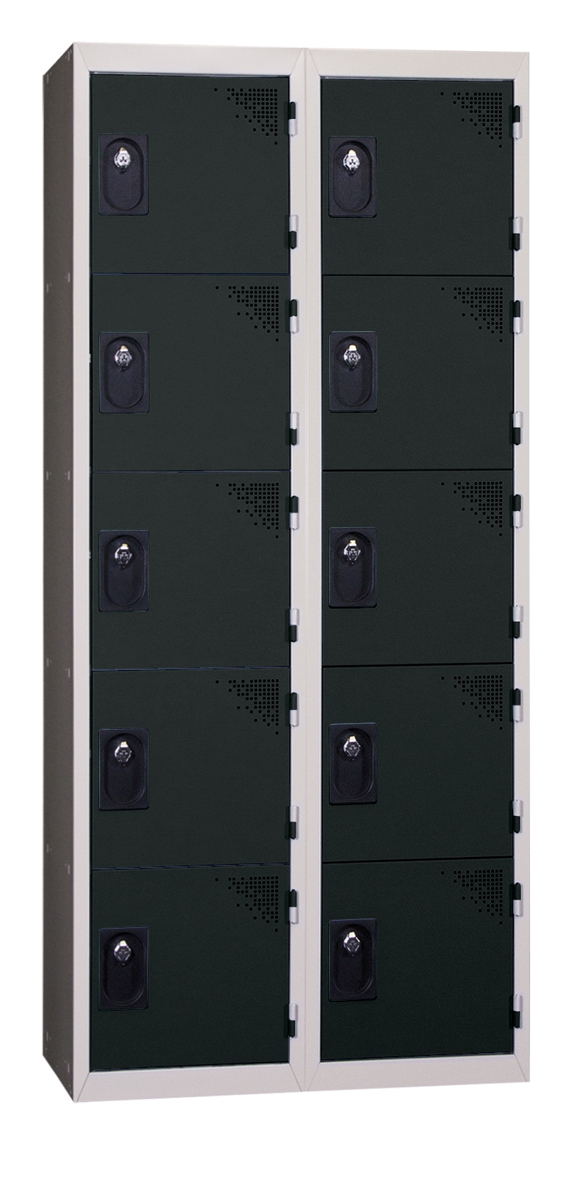 5-compartment, 2-column, 300mm wide locker. This locker is delivered ready to use. Ideal for public facilities. This locker is also available in a 400mm wide version. Description: - Adhesive plastic label holder.
