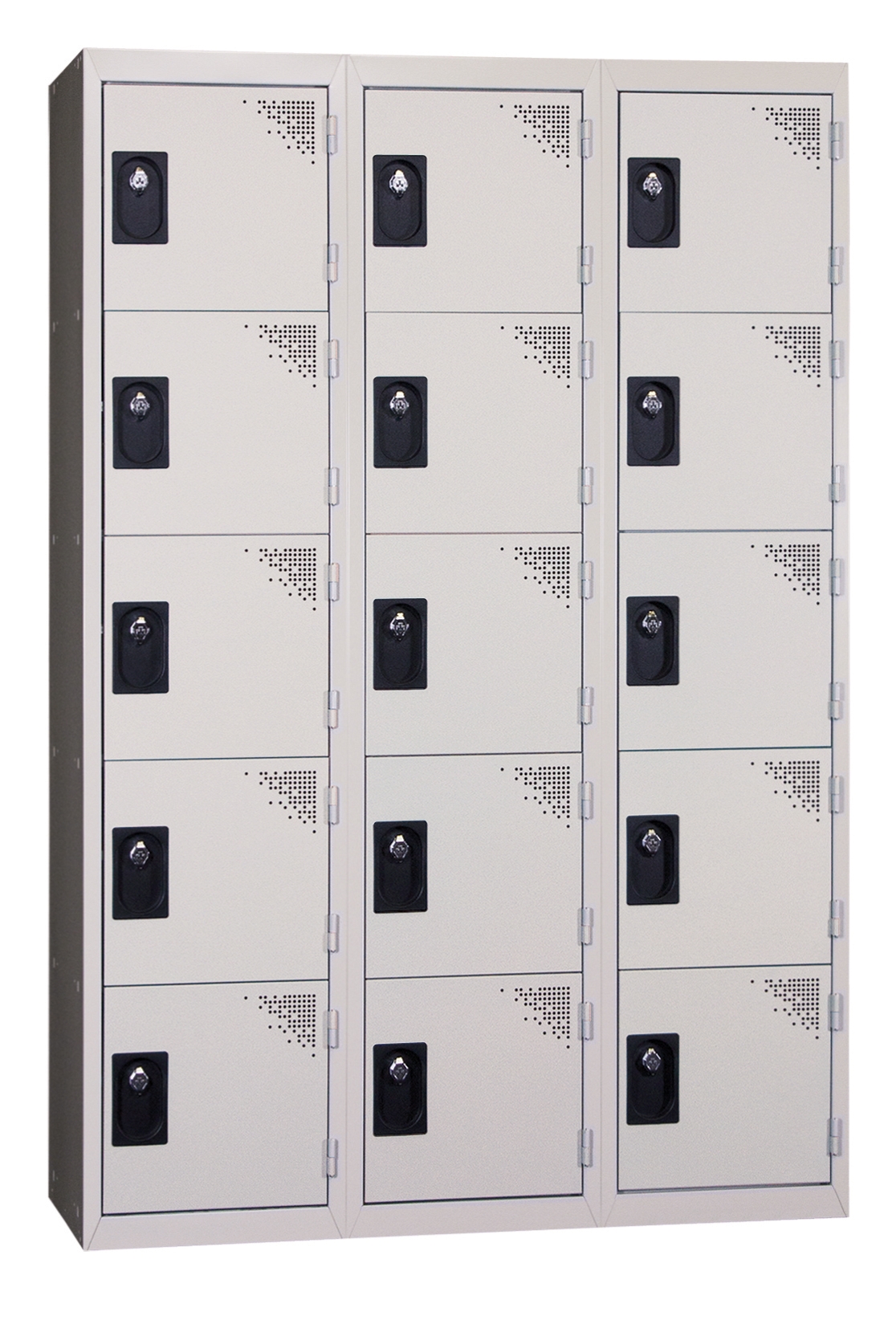 Multicase piece cloakroom, 5 boxes stacked, 3 columns. Plastic adhesive label holder. Metal body with structural reinforcement. Door with assoudisseurs optimized for your back full height confort.Ventilation. Door with omega vertical reinforcement. Closure system lock (padlock hasp or other request please contact us). Antidégondable exclusive and patented EVP, door to travel 180 °. 7/10ths thickness as standard. Colors on stock: Grey Body Ral 7035, Ral 7035 Grey Door, Blue Ral 5005, Ral 3003 Red, Anthracite RAL 7016 (other colors are subject to a surcharge and a longer time, please contact us). Dimensions: 1800mm x 1200mm x 500mm (H x W x D Top). Cloakroom ready after unpacking.