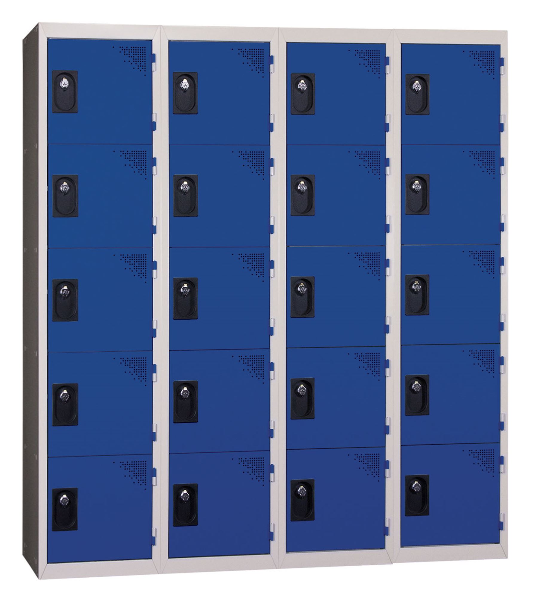 Multicase piece cloakroom, 5 boxes stacked, 4 columns. Plastic adhesive label holder. Metal body with structural reinforcement. Door with assoudisseurs optimized for your back full height confort.Ventilation. Door with omega vertical reinforcement. Closure system lock (padlock hasp or other request please contact us). Antidégondable exclusive and patented EVP, door to travel 180 °. 7/10ths thickness as standard. Colors on stock: Grey Body Ral 7035, Ral 7035 Grey Door, Blue Ral 5005, Ral 3003 Red, Anthracite RAL 7016 (other colors are subject to a surcharge and a longer time, please contact us). Dimensions: 1800mm x 1200mm x 500mm (H x W x D Top). Cloakroom ready after unpacking.