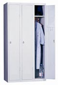 Cloakroom office with lock and 2 keys next column. Plastic adhesive label holder. - 1 shelf with coat rail and 1 hook hangers -. Metallic body with structural reinforcement. - Door with omega vertical and horizontal reinforcement. It is provided with assourdisseurs for better comfort. - Additional hook on the reinforcement of the door. - System of closing by lock or padlock hasp. Others on request. - Enhanced by a perforation along the entire height of the back of the wardrobe Ventilation. Exclusive and patented anti-swing-off system, closed or open to travel 180 ° door. Sheet quality cold rolled steel FE P01. Thickness 7/10ths. Easy and after unpacking, 3 minutes without tools. Nylon rivets are provided for stability. On request, POP rivets aluminum color to transform your removable in one piece dressing. Colours in stock: Color choice RAL 7035 gray, beige RAL 1015, RAL 9005 or black RAL 7016 gray (other colors are subject to a surcharge and may not be available immediately, contact us). Dimensions (HautxLargxProf): 1800 mm x 300 mm x 500 mm.Attention photo presented with starting column and next column. Photo made with careful starting column and next column.