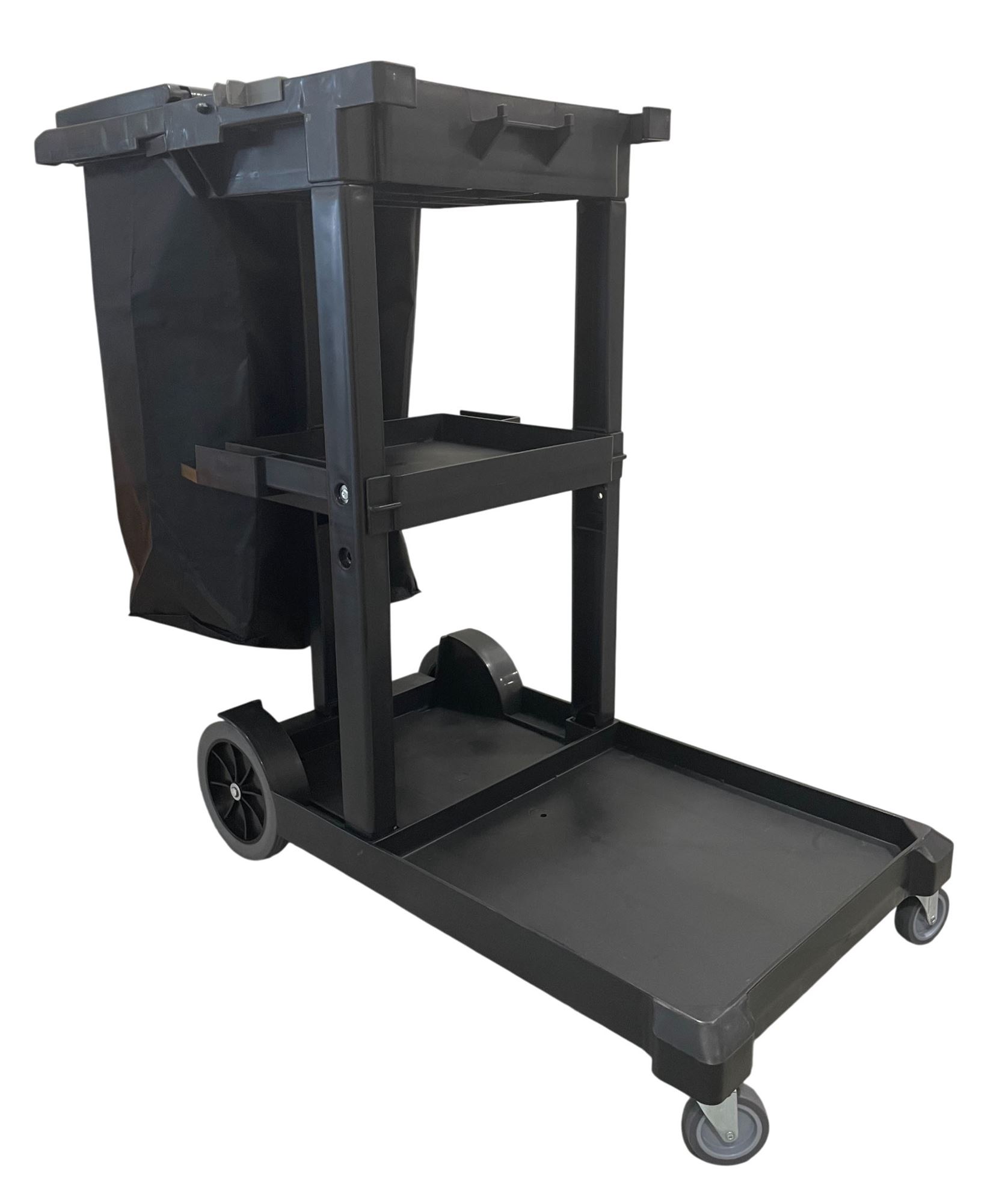 Professional 3-tier cleaning trolley. Jaw press. Bag holder with reusable bag. Made of sturdy and durable PP.