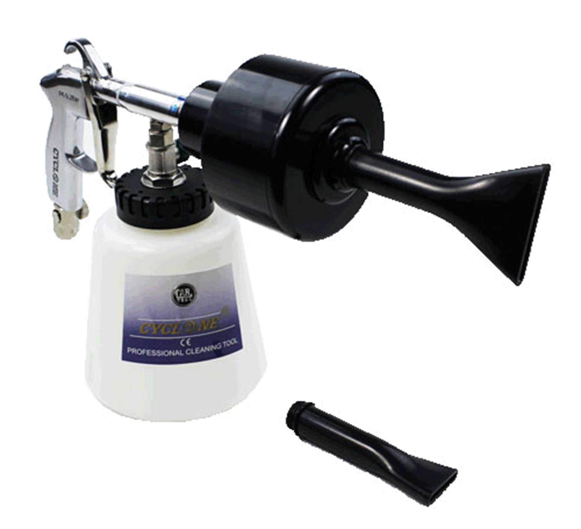 The system incorporates a black plastic foam block and an air intake control valve, allowing for easy adjustment of foam production to suit specific needs. A shut-off valve provides a choice between foam and air for added control during operation. Powered solely by compressed air, this equipment requires neither water nor electricity, making it practical and versatile for automotive cleaning.