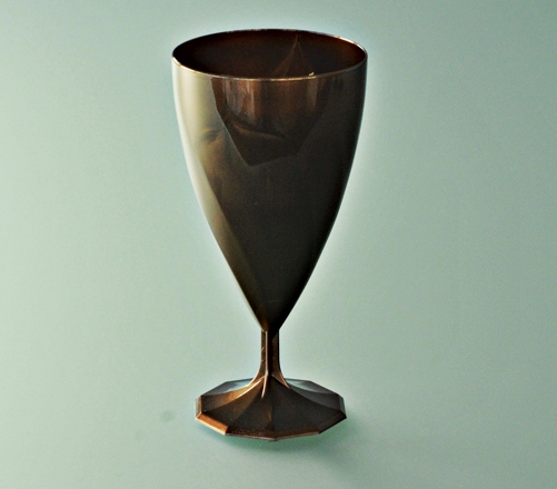 Chocolate-colored plastic wine glass. Capacity 15 cl. Reusable. Reduces the risk of breakage.