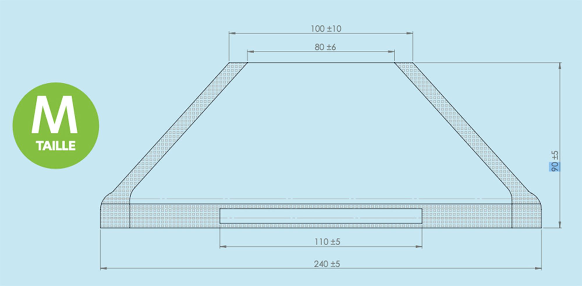 Standard adult size M width 240 mm. Available in size S 223 mm and L 268 mm.