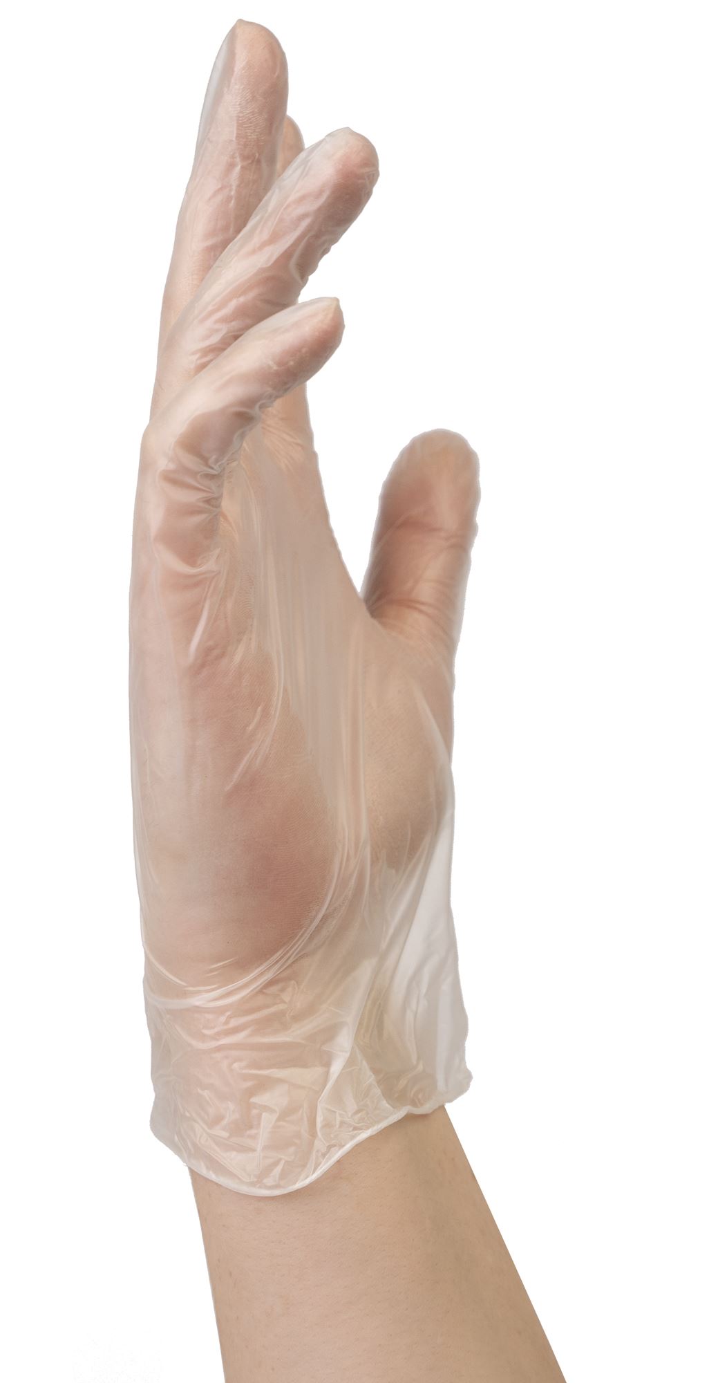 Disposable lightly powdered vinyl examination glove. Meets the requirements of directive 93/42 / EEC powder medical devices. Certified in accordance with standard EN455 parts 1, 2 and 3 .