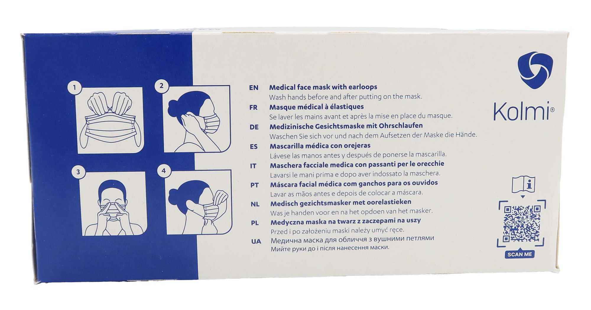 Surgical mask made in France by Kolmi. 3-ply mask EN14683 type II.