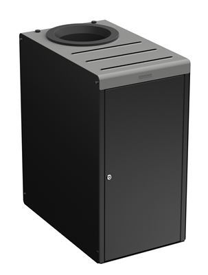 The bin is colored light gray RAL 9022 on the top and the body of the bin is manganese gray.