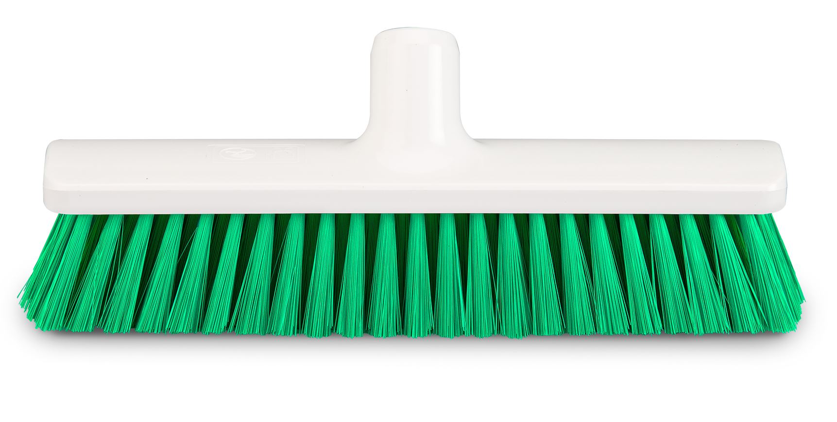 FalconBrush 40cm medium-stiff green HACCP broom. Available in several colors to prevent cross-contamination. Durable polyester fibers, angled handle. Certified for food processing and institutional use.