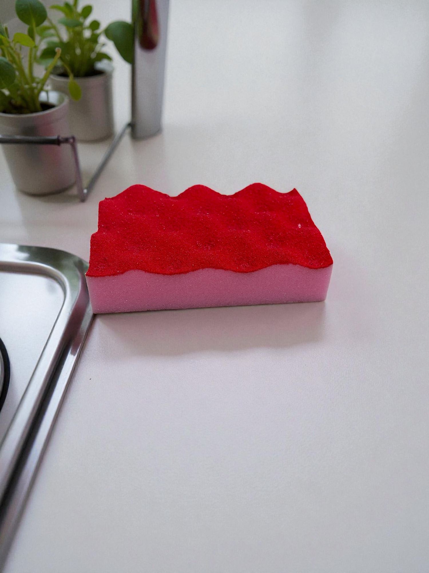 The red sponge is a new generation sponge which does not scratch thanks to its PU fibre. The double-sided synthetic sponge allows scouring without scratching or damaging the washed support. The synthetic material of the sponge avoids the development of bacteria unlike a traditional cellulose sponge. This sponge is therefore compatible for cleaning in the kitchen.