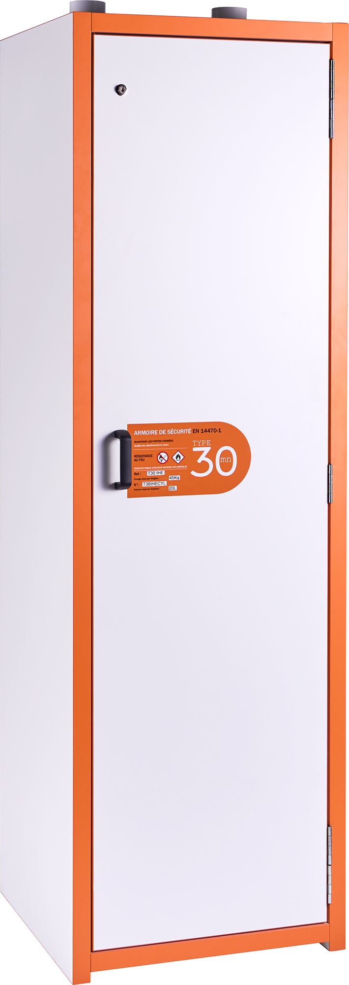 Single-door flammable product safety cabinet. Robust and compliant with NF EN 14470-1. 30-minute fire suppression time. 120-liter capacity. Quotation available upon request, depending on quantity and market requirements.