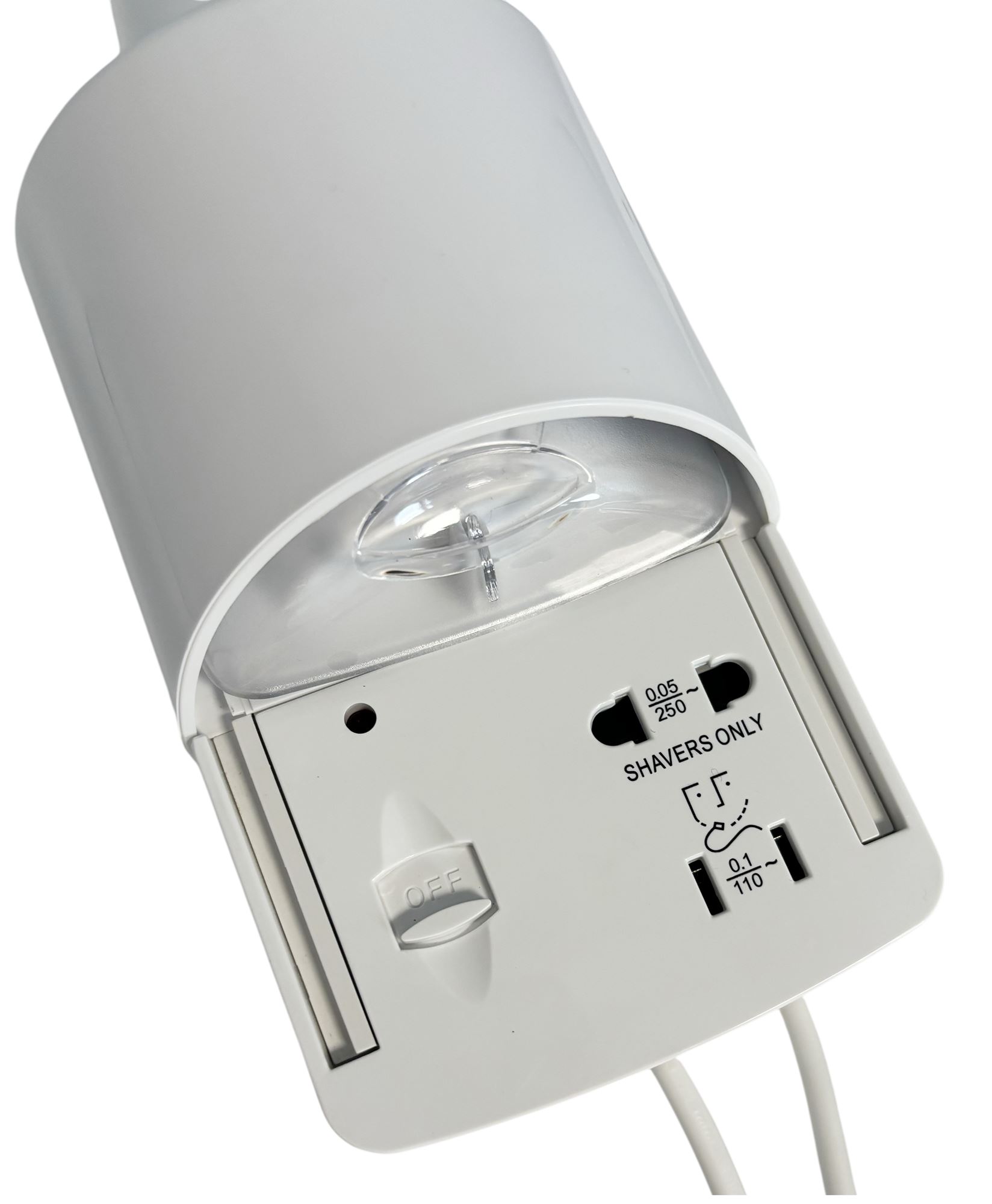 Dual voltage shaver socket protected by a translucent sliding cover