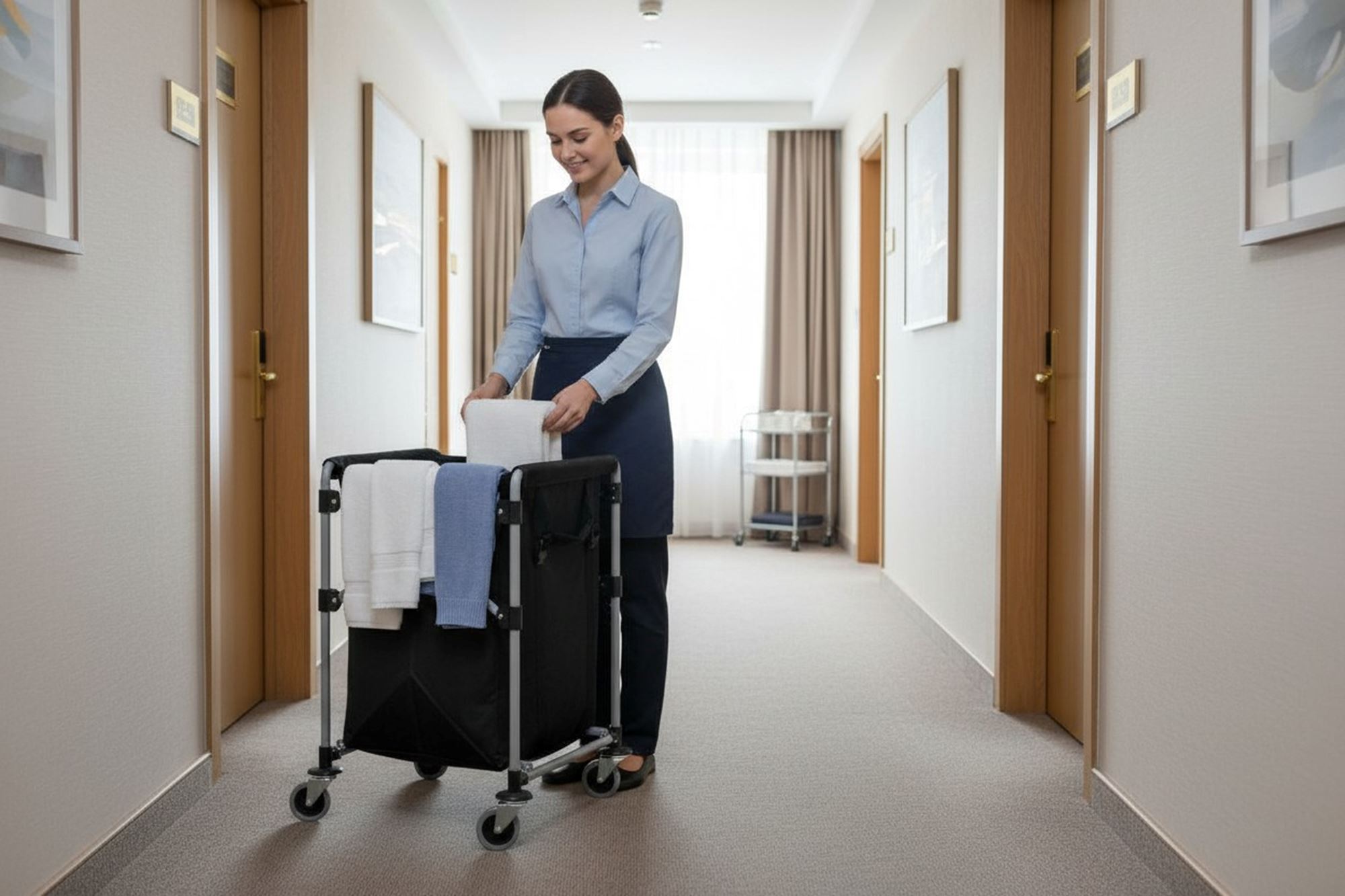Suitable for collecting and transporting all types of laundry and waste from rooms.