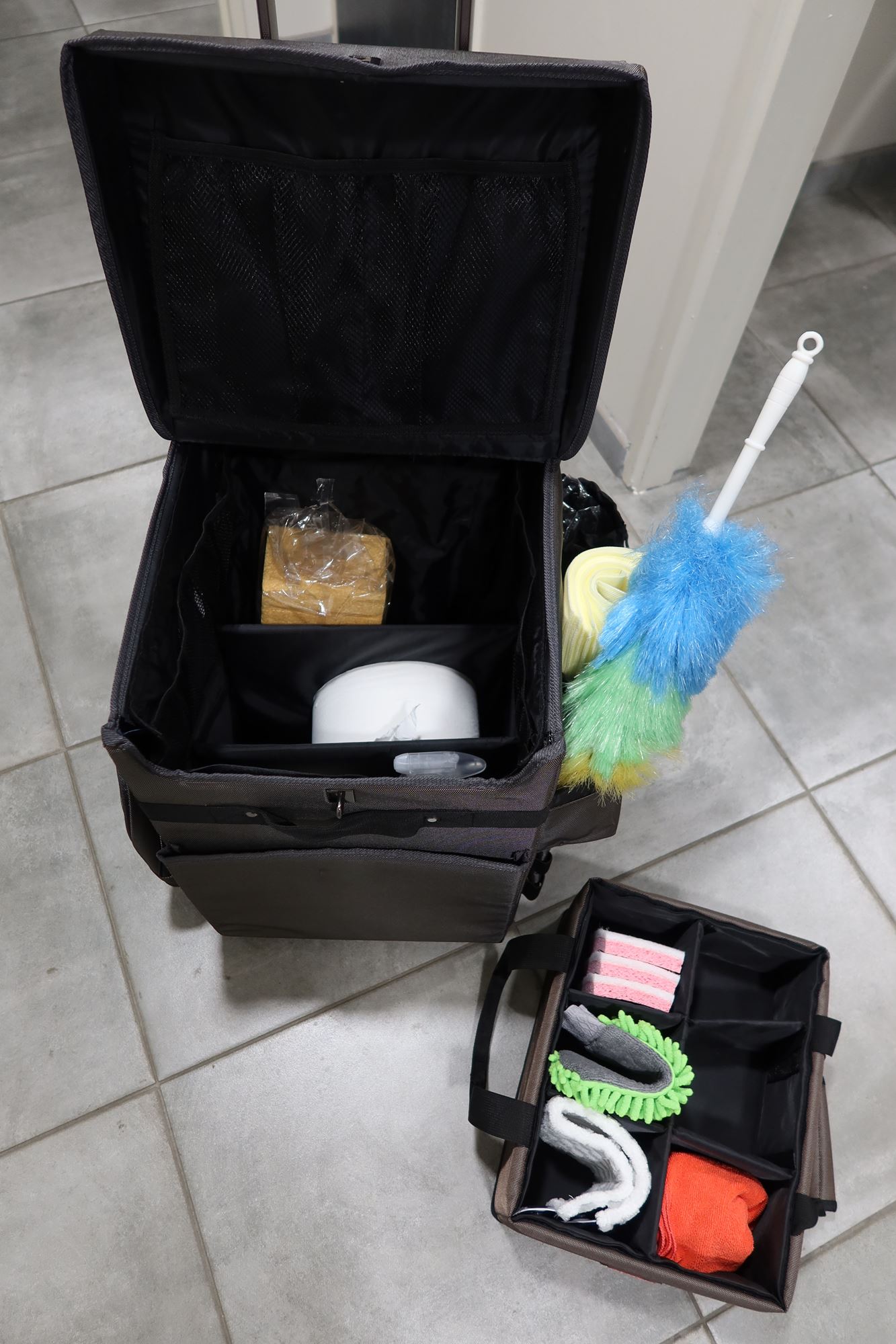 The Room Service Cart is available in several sizes and allows for cleaning and room passage with absolute discretion and improved ergonomics for staff.