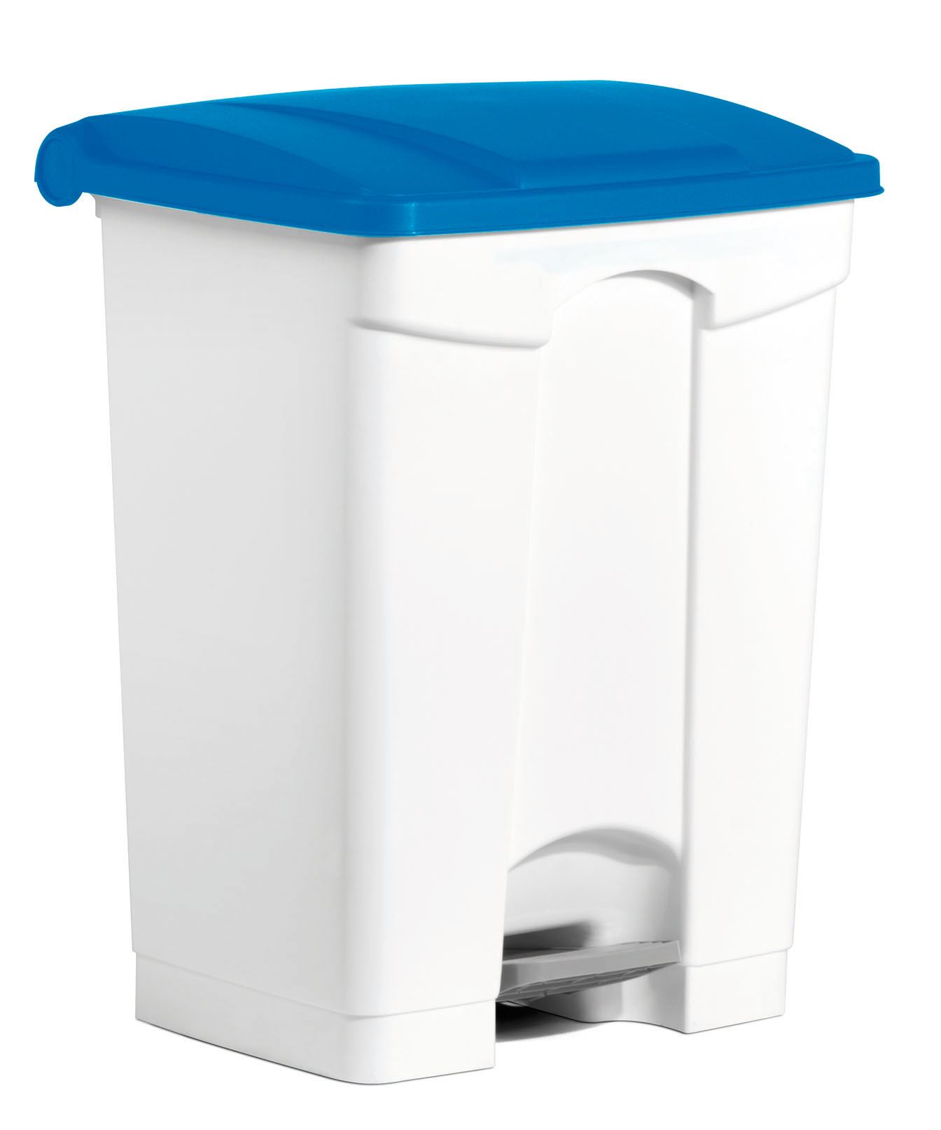 The 70-liter kitchen bin with blue lid is HACCP-certified and designed for selective sorting of kitchen paper thanks to its touchless blue lid opening. This sturdy PE bin is suitable for professional and community use. Its white body makes it easy to clean.