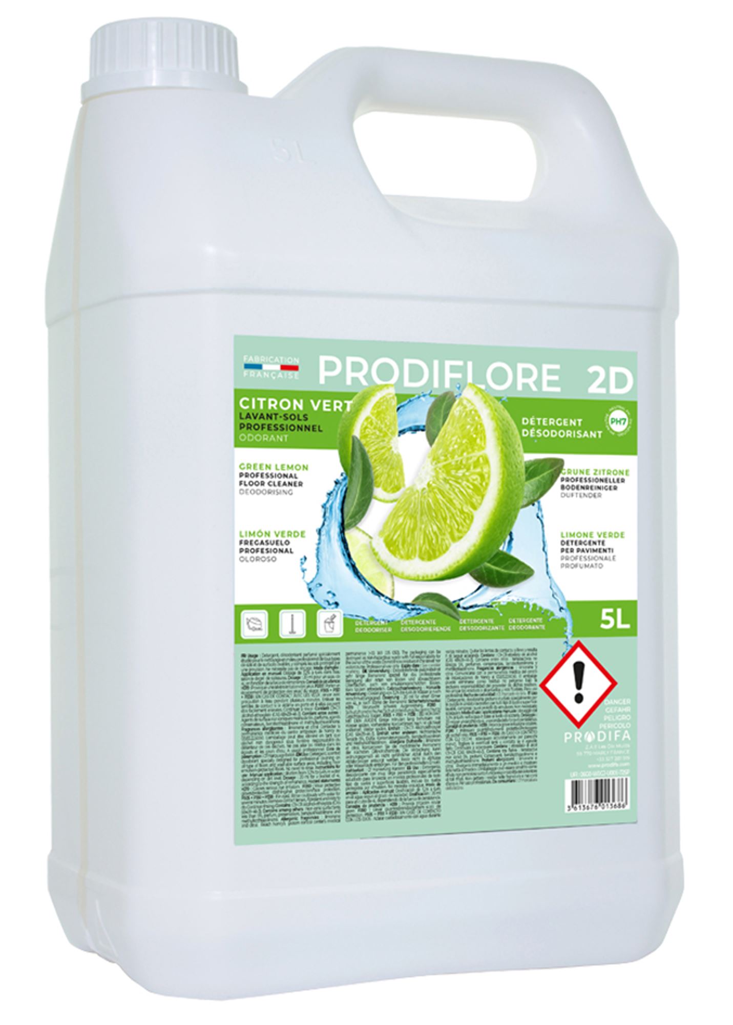 Lime-scented deodorizing detergent. Floor and surface cleaner. pH neutral. For professional use in public facilities, industry, cafes, hotels, restaurants, etc. Suitable for use in automatic scrubbers or flat mopping. Long-lasting fragrance. 5-liter container.