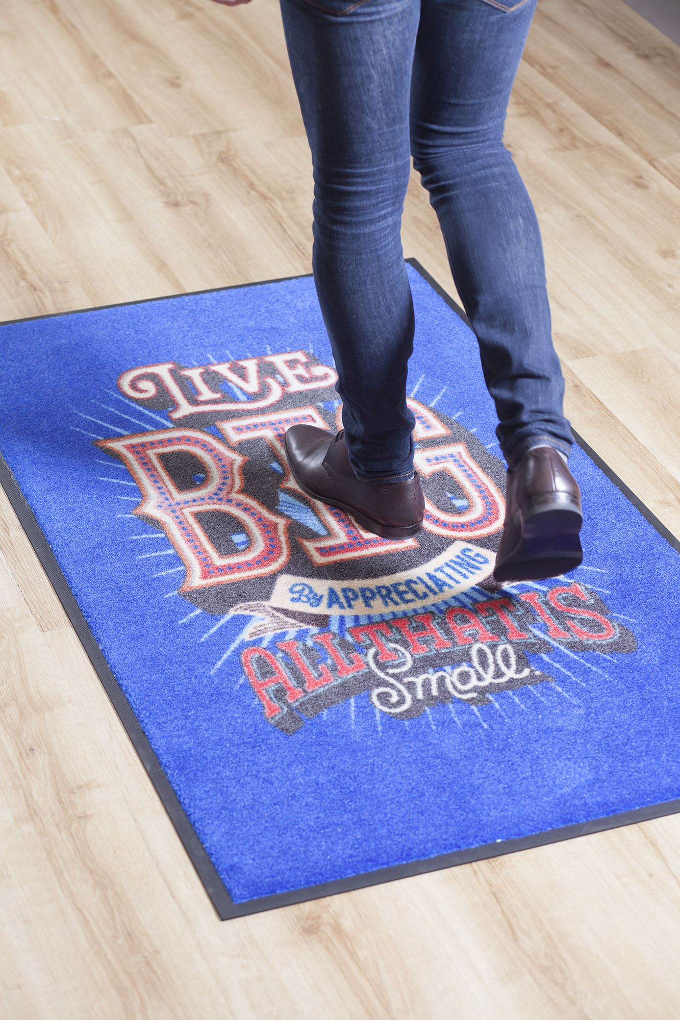 Our high-quality printing allows us to reproduce logos and designs with exceptional detail. Very easy to clean, our GREEN JET PRINT rug boasts incredible stain resistance, and the colors won't fade after multiple washes.