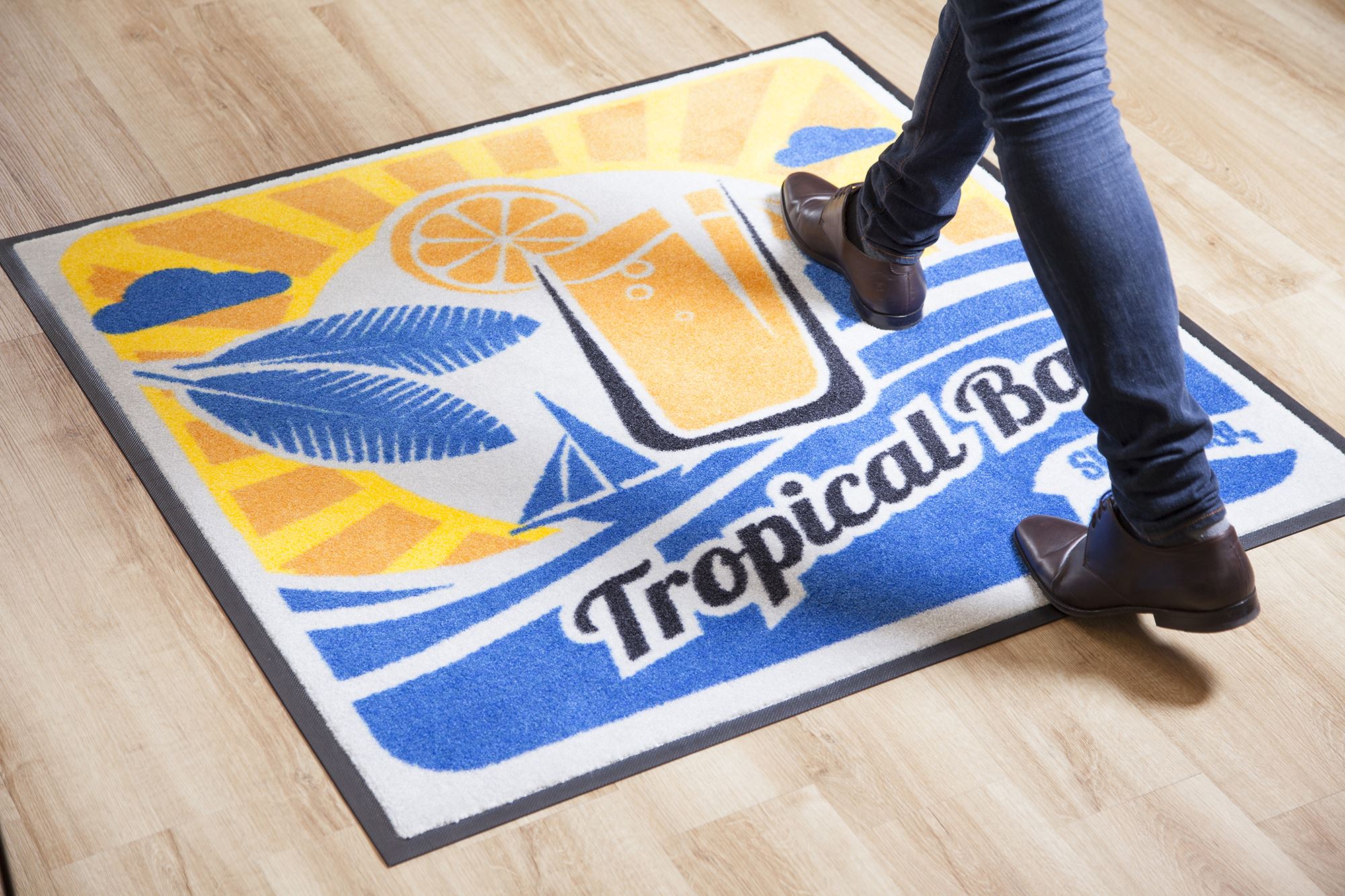 Logo entrance mat 85x115 cm jet print. High-quality printing for logos and detailed designs. Machine washable at 60°C. 66 colors available.