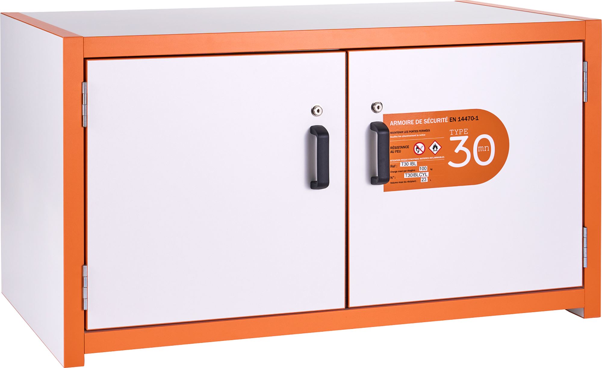 Small T30 IBL Voussert safety cabinet with 2 doors. Made in France, it is designed for the safe storage of hazardous products, in accordance with standard NF EN 14470-1 1.