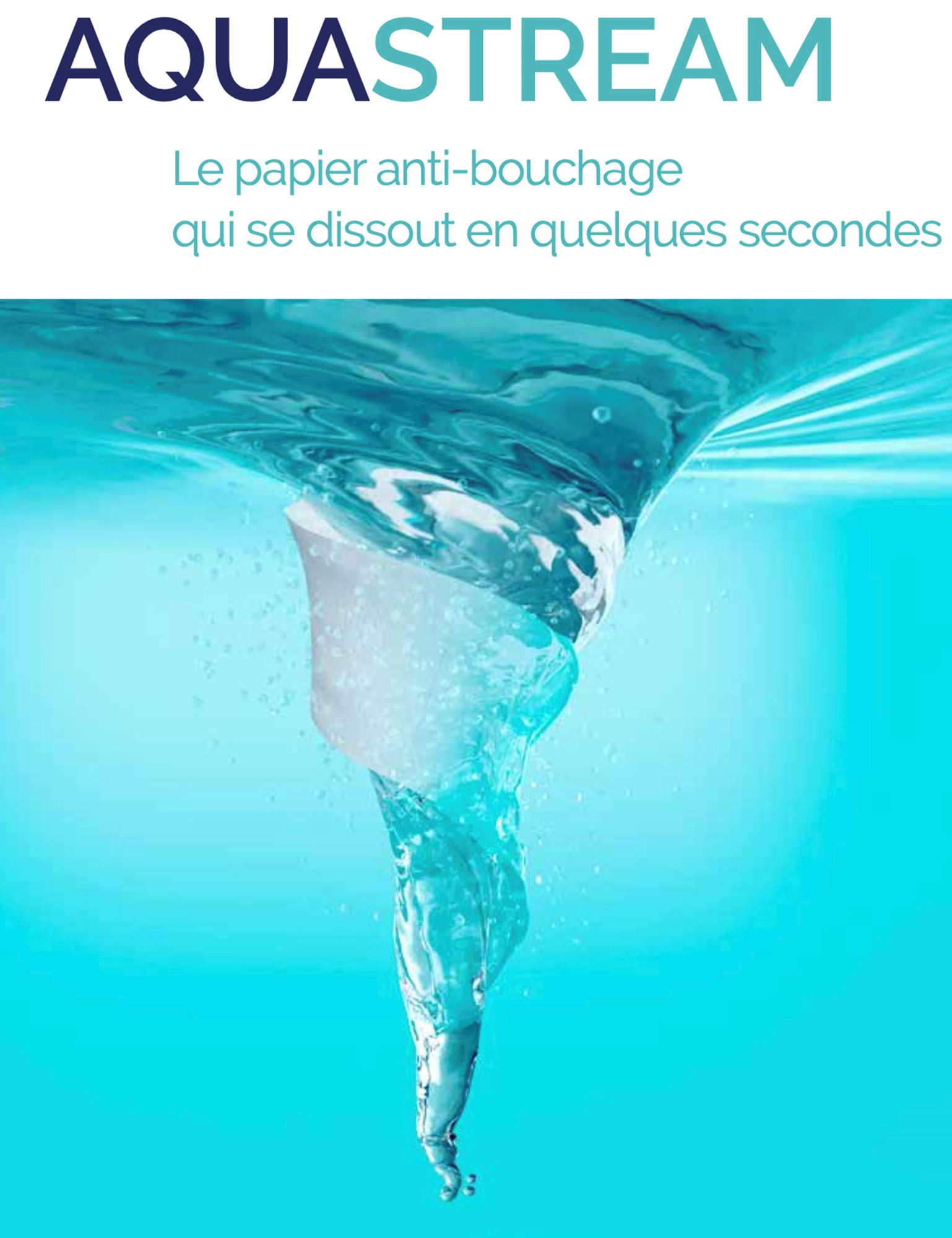 Toilet paper from the Aquastream range: Anti-clogging toilet paper that dissolves in seconds.