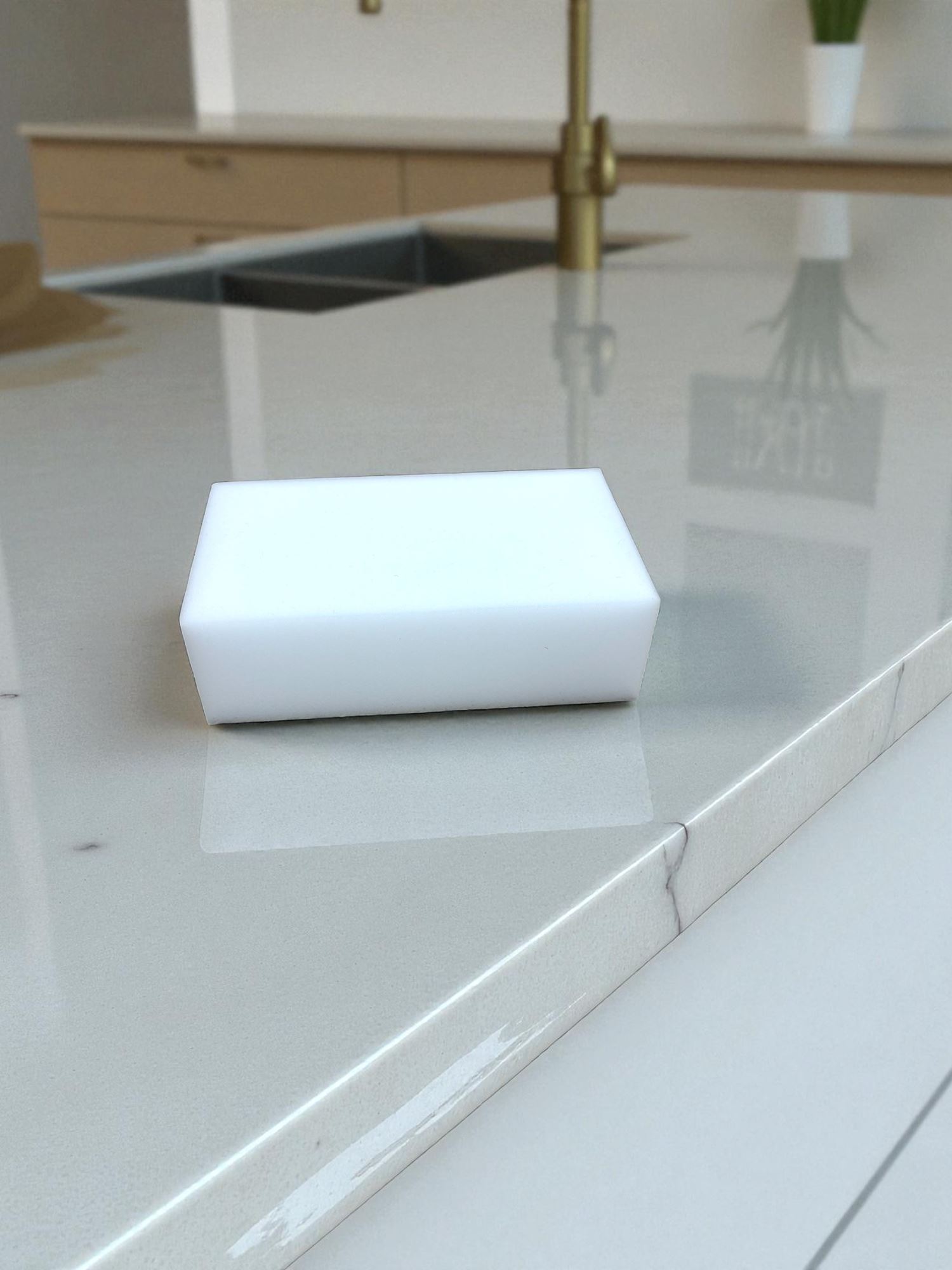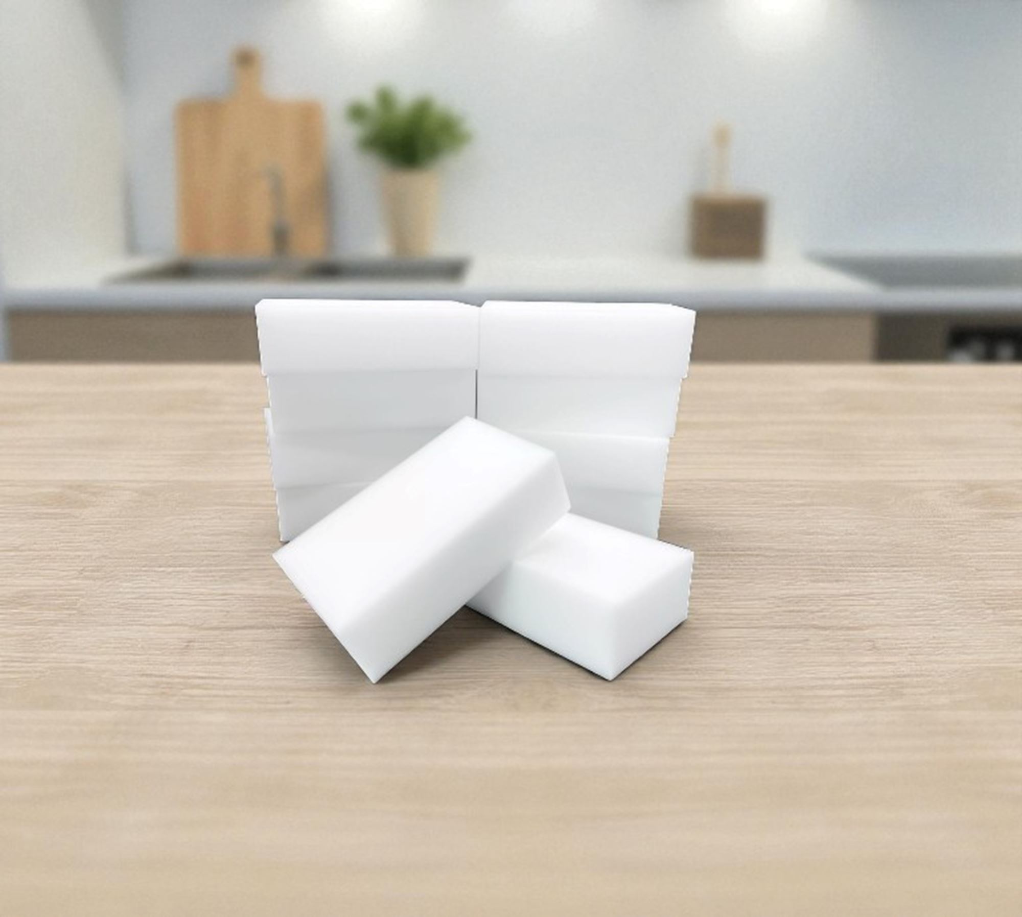The melamine magic sponge is a sponge designed for dry removing stains or marks from hard surfaces. Melamine is a delicate material, but it possesses exceptional stain-removing properties on all surfaces without damaging them.