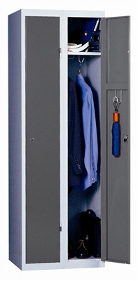 Cloakroom office monobloc 2 columns, with lock and 2 keys. Plastic adhesive label holder. - 1 shelf with coat rail and 1 hook hangers -. Metallic body with structural reinforcement. - Door with omega vertical and horizontal reinforcement. It is provided with assourdisseurs for better comfort. - Additional hook on the reinforcement of the door. - System of closing by lock or padlock hasp. Others on request. - Enhanced by a perforation along the entire height of the back of the wardrobe Ventilation. Exclusive and patented anti-swing-off system, closed or open to travel 180 ° door. Sheet quality cold rolled steel FE P01. Thickness 7/10ths. Colours in stock: Color choice RAL 7035 gray, beige RAL 1015, RAL 9005 or black RAL 7016 gray (other colors are subject to a surcharge and may not be available immediately, contact us). Dimensions (HautxLargxProf): 1800 mm x 600 mm x 500 mm. Cloakroom ready after unpacking.