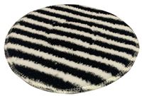 In order of aggressiveness - The white microfiber disc for classic cleaning on all surfaces and also carpets. - The white microfiber disc with blue stripes can be used for cleaning and scrubbing floors and surfaces with rotation speeds of 135 to 350 rpm. - The white, grey striped microfibre scouring disc can be used with rotation speeds from 135 to 350 rpm and whose function is to clean and scrub floors and surfaces. - The very large microfiber disc for deep cleaning and scrubbing, white with black stripes, can be used with rotation speeds from 135 to 350 rpm and whose function is to clean and scrub floors and surfaces.