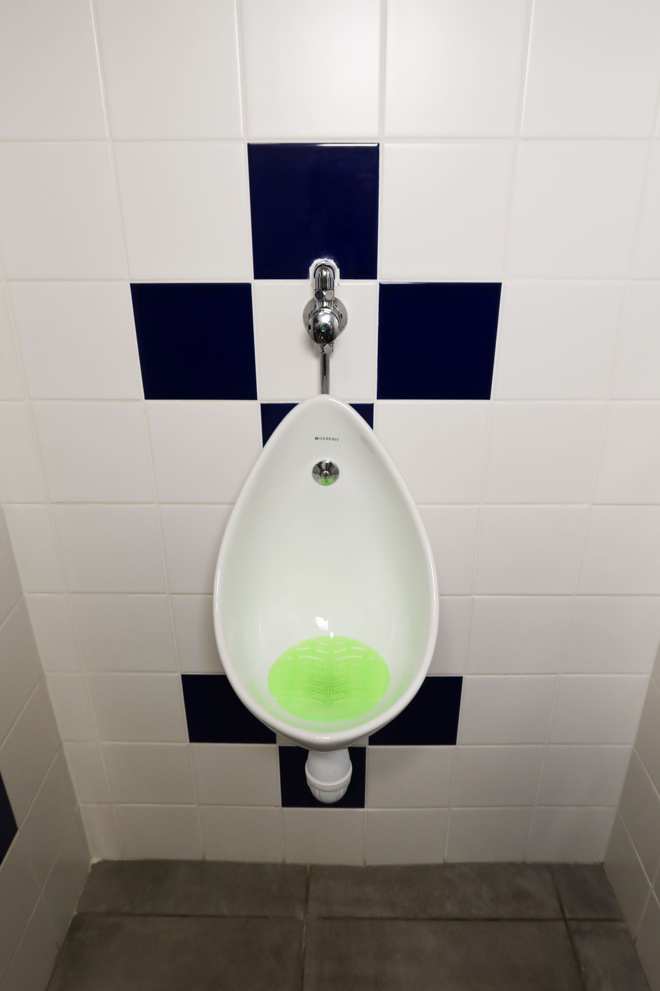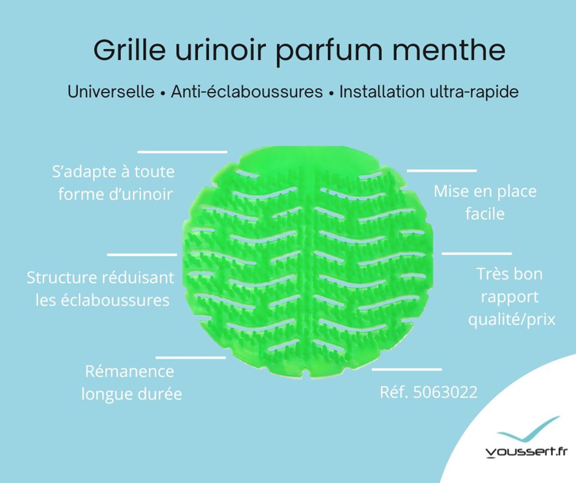 Mint-scented urinal screen. Splash-proof. Fits any urinal. Ideal for train stations, airports, concert halls, stadiums, etc., as well as restaurants and bars. Long-lasting scent.