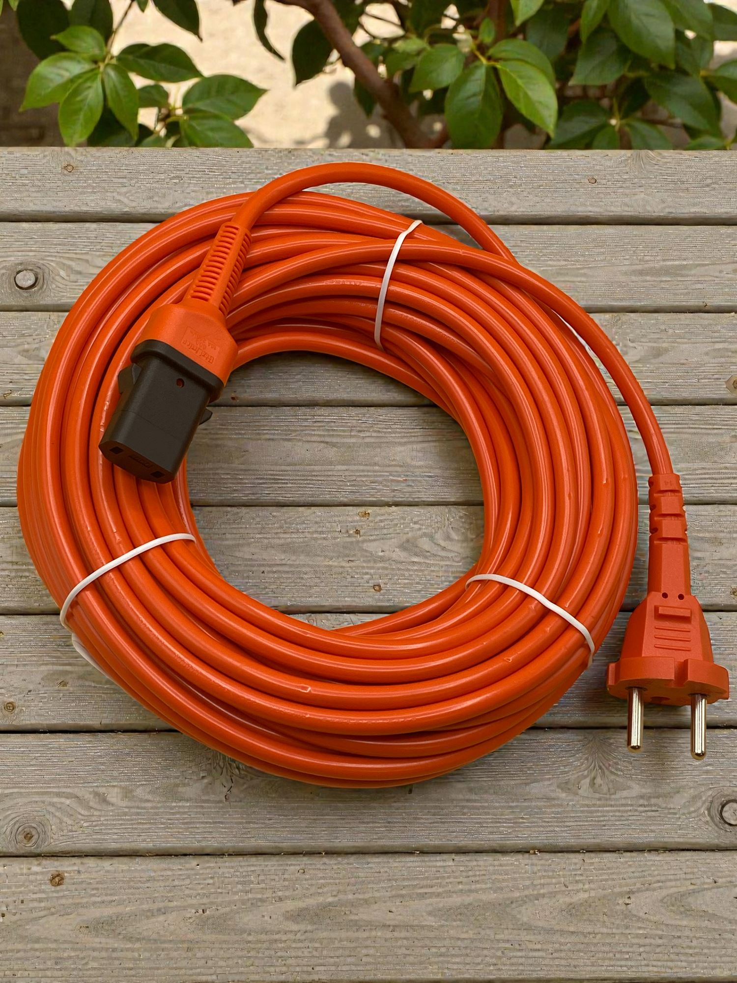 Detachable 15m orange power cable. Suitable for Nilfisk floor scrubbers, single-disc scrubbers and vacuum cleaners with connector.