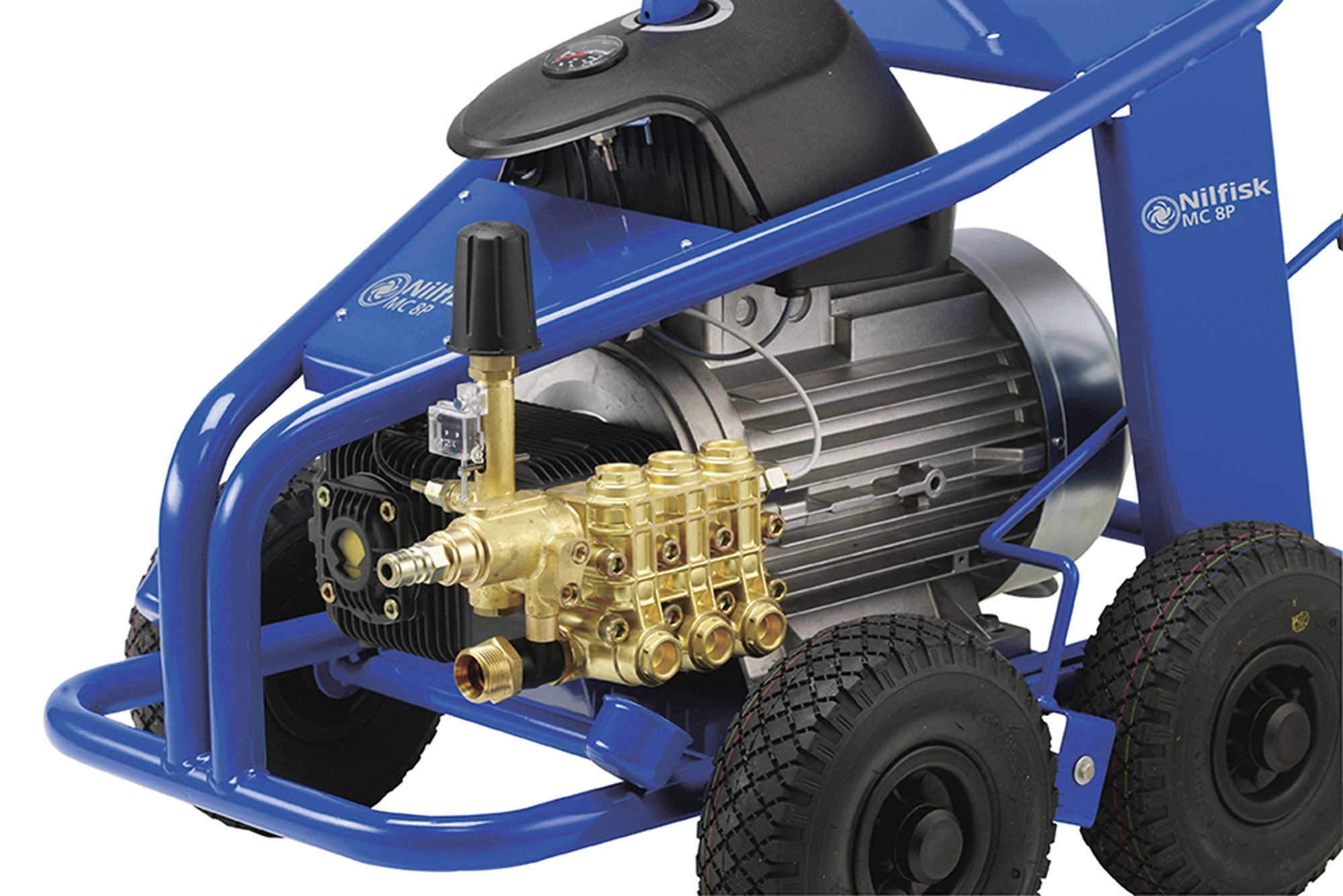 Nilfisk MC 8P-180/2100 high pressure cleaner. The MC 8P range is equipped with very high flow high pressure pumps particularly suited to use in agriculture (livestock farming in particular but not for use in the food industry); public works companies or heavy industries.