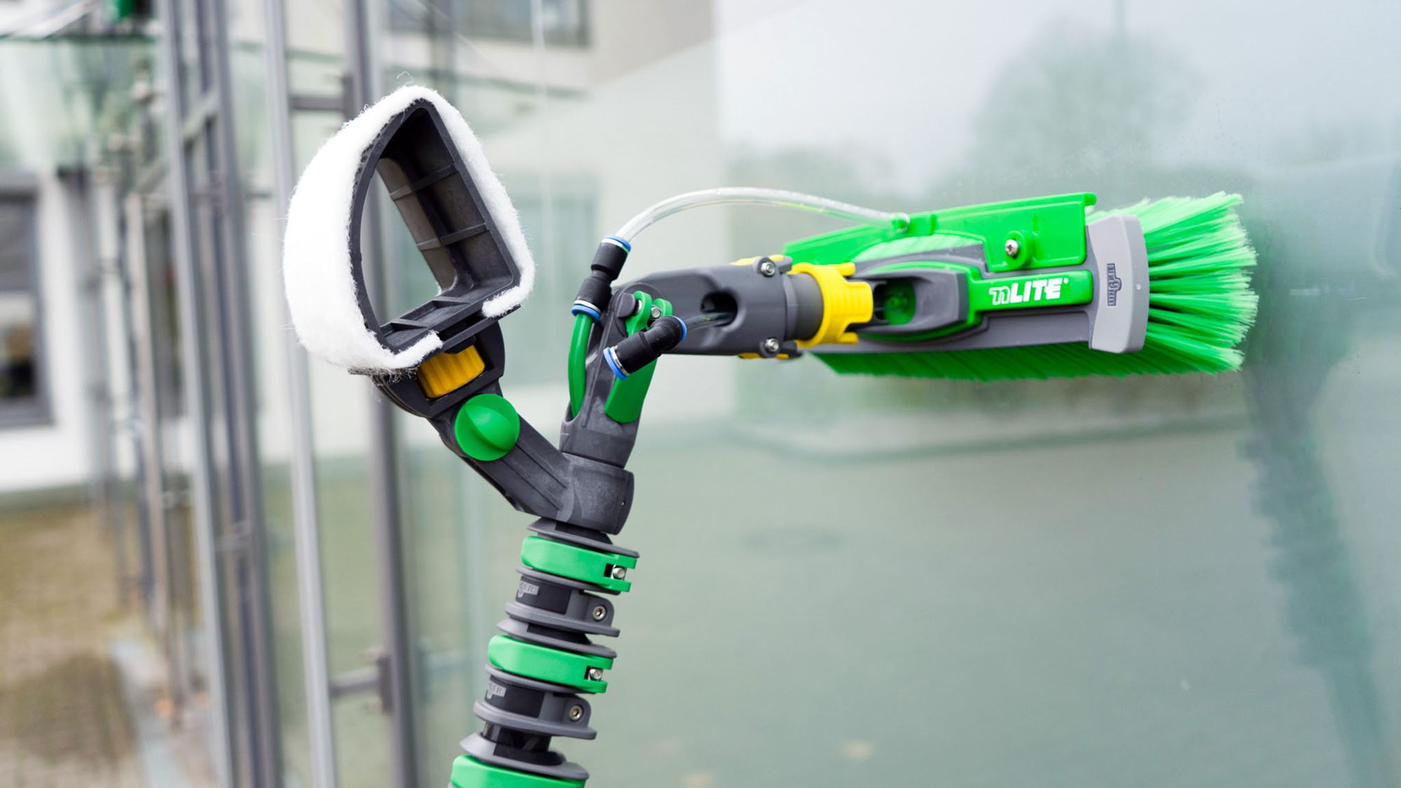 The pad holder + abrasive pad are suitable for cleaning glass surfaces with Unger nLite poles.