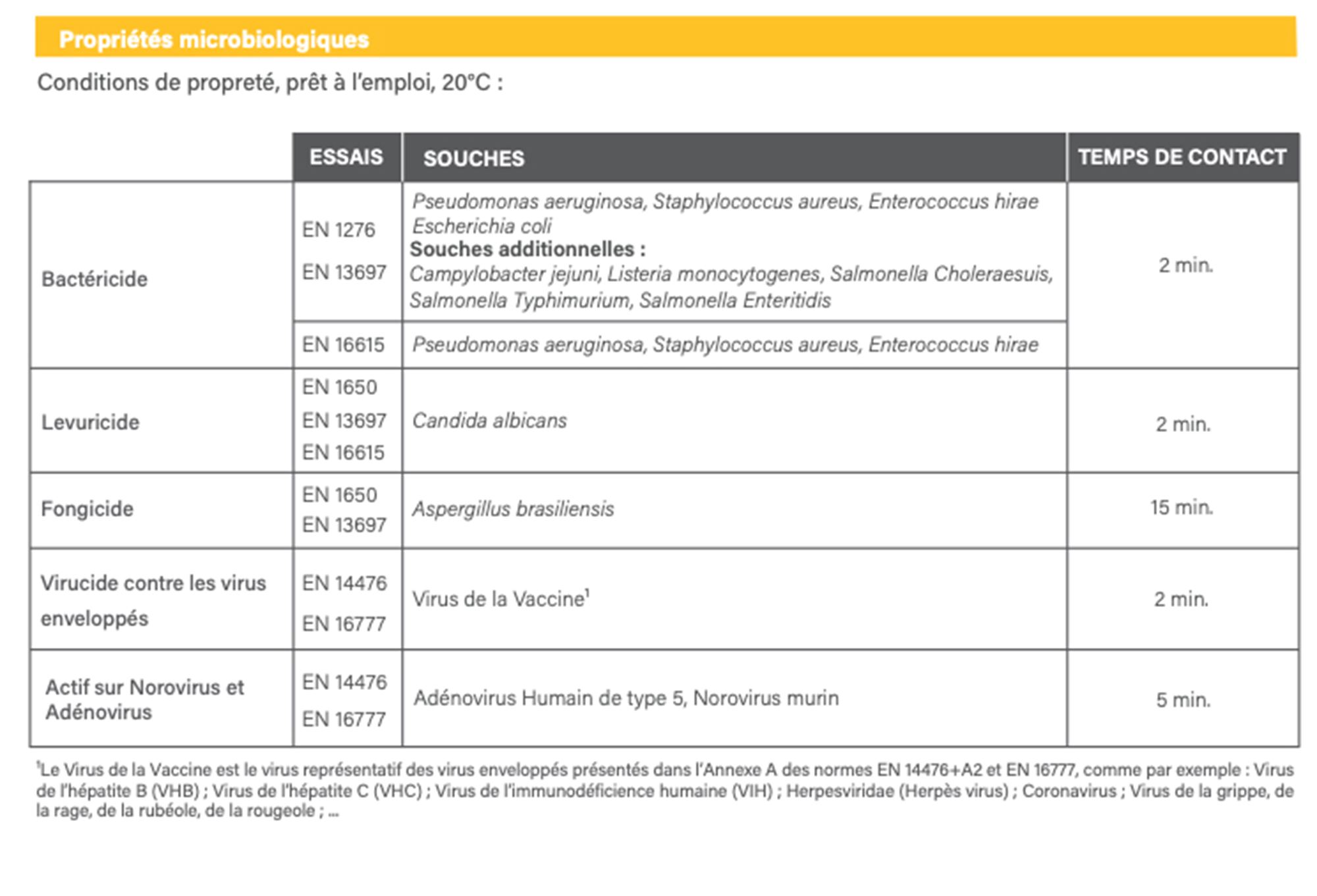 - Virucidal against enveloped viruses: 2 min (See technical data sheet for more information).
